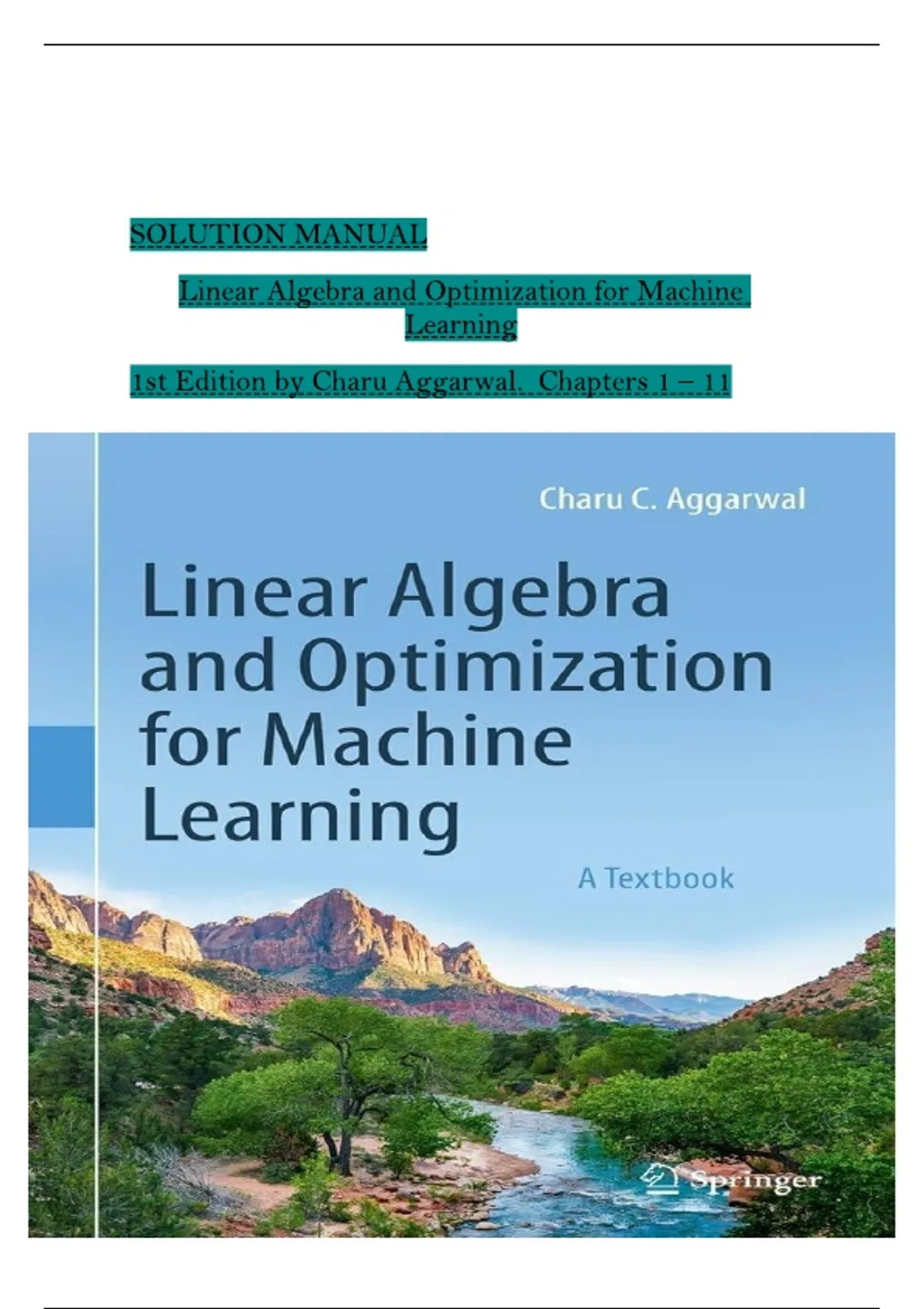 Solution Manual for Linear Algebra and Optimization for Machine Learning 1st Edition by Charu Aggarwal, All 11 Chapters Covered, Verified Latest Edition ISBN:9783030403447