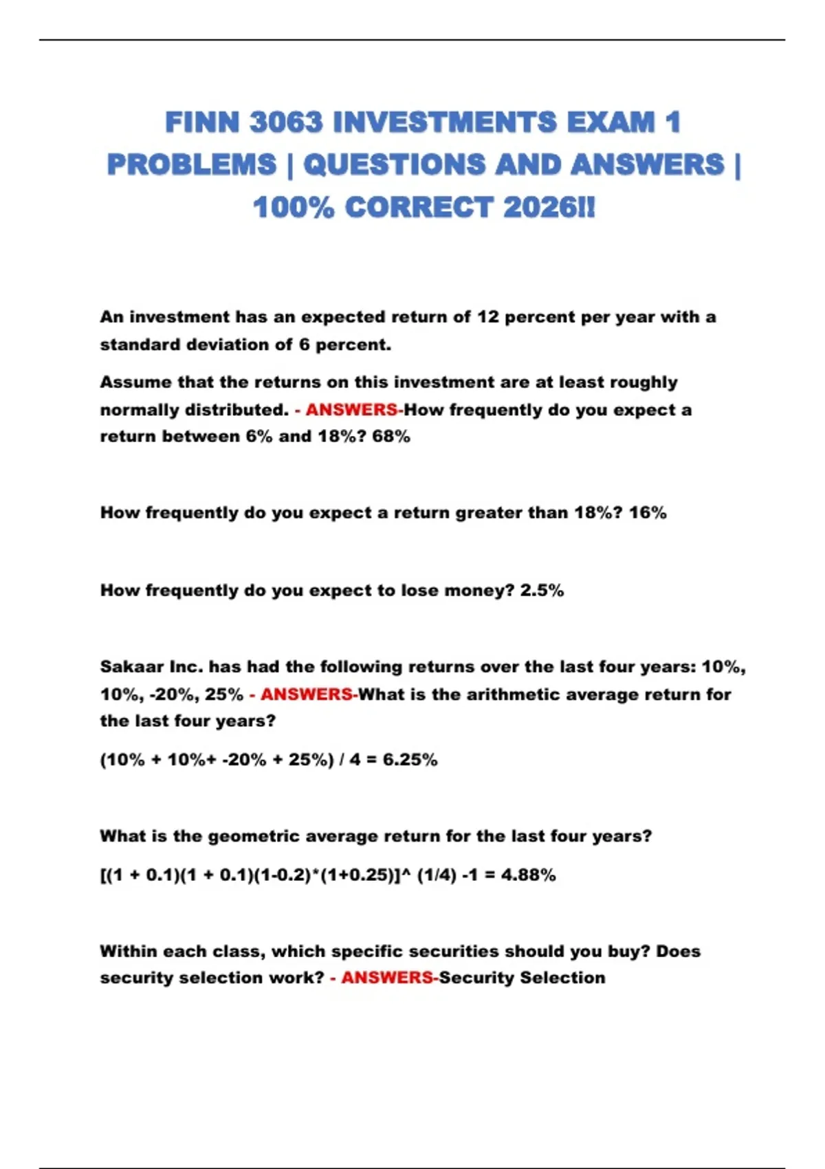 10%, -20%, 25% - ANSWERS-What is the arithmetic average return for
