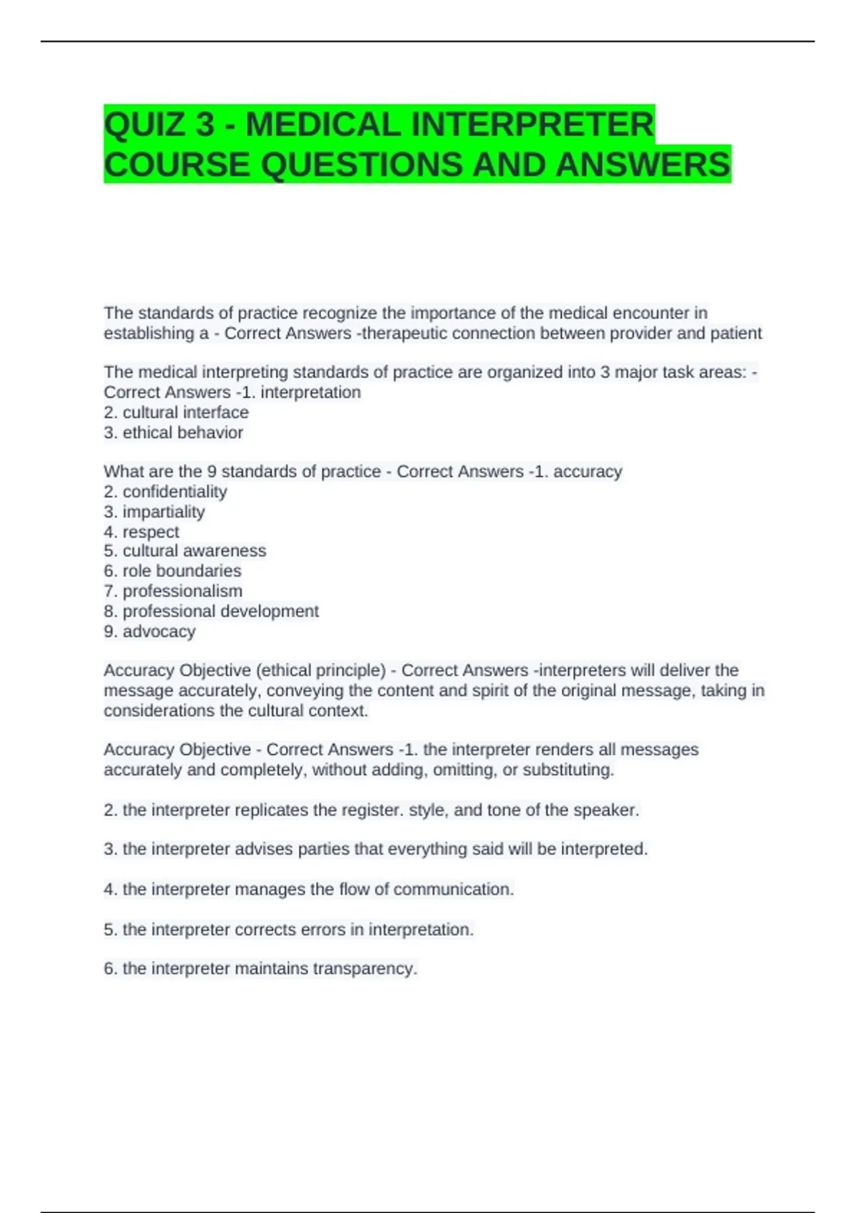 Accuracy Objective - Correct Answers -1. the interpreter renders all messages