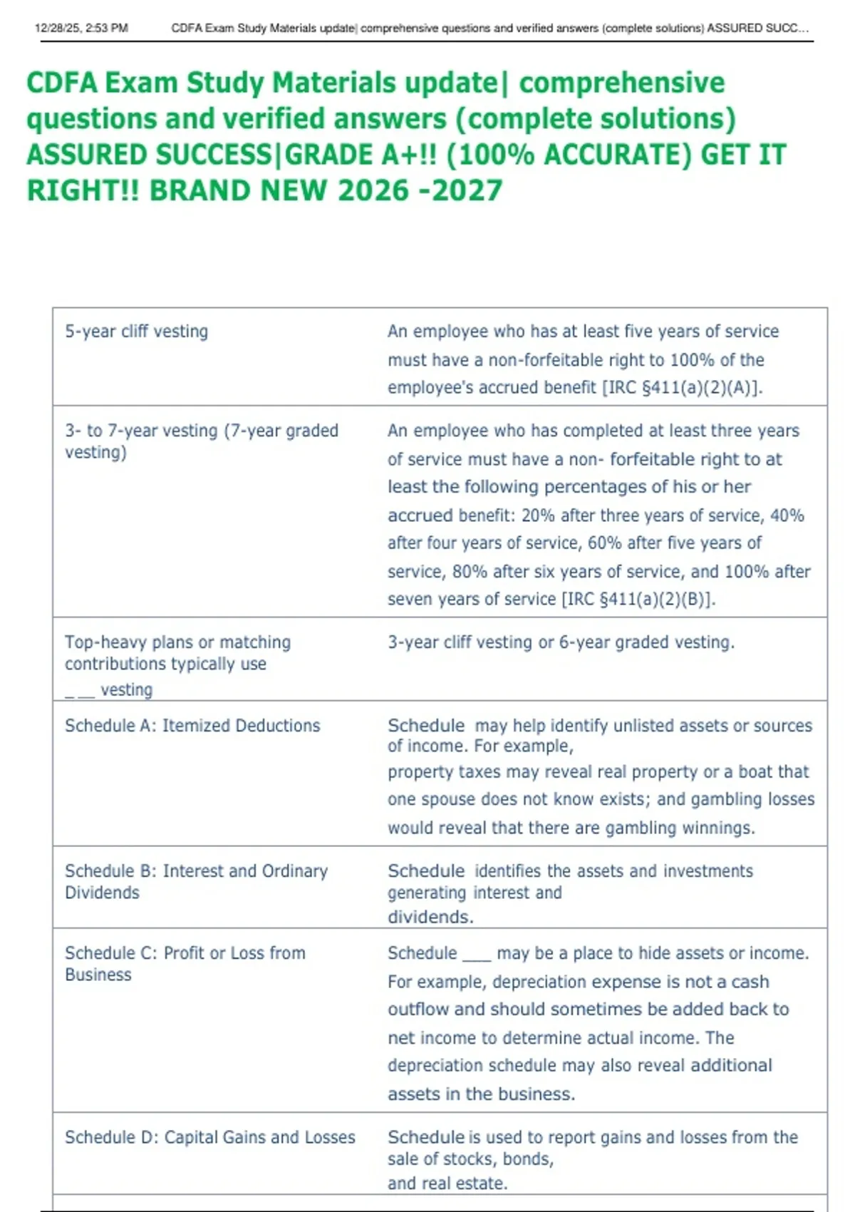 12/28/25, 2:53 PM CDFA Exam Study Materials update| comprehensive questions and verified answers (complete solutions) ASSURED SUCC…