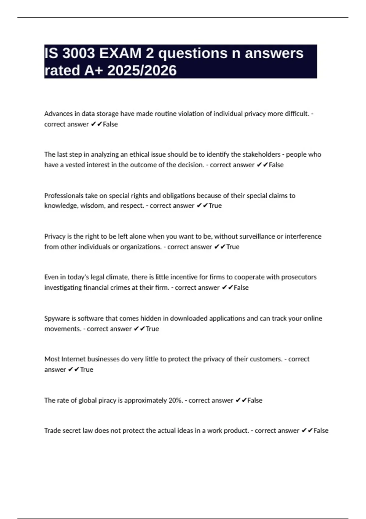 IS 3003 EXAM 2 questions n answers rated A+ 2025/2026