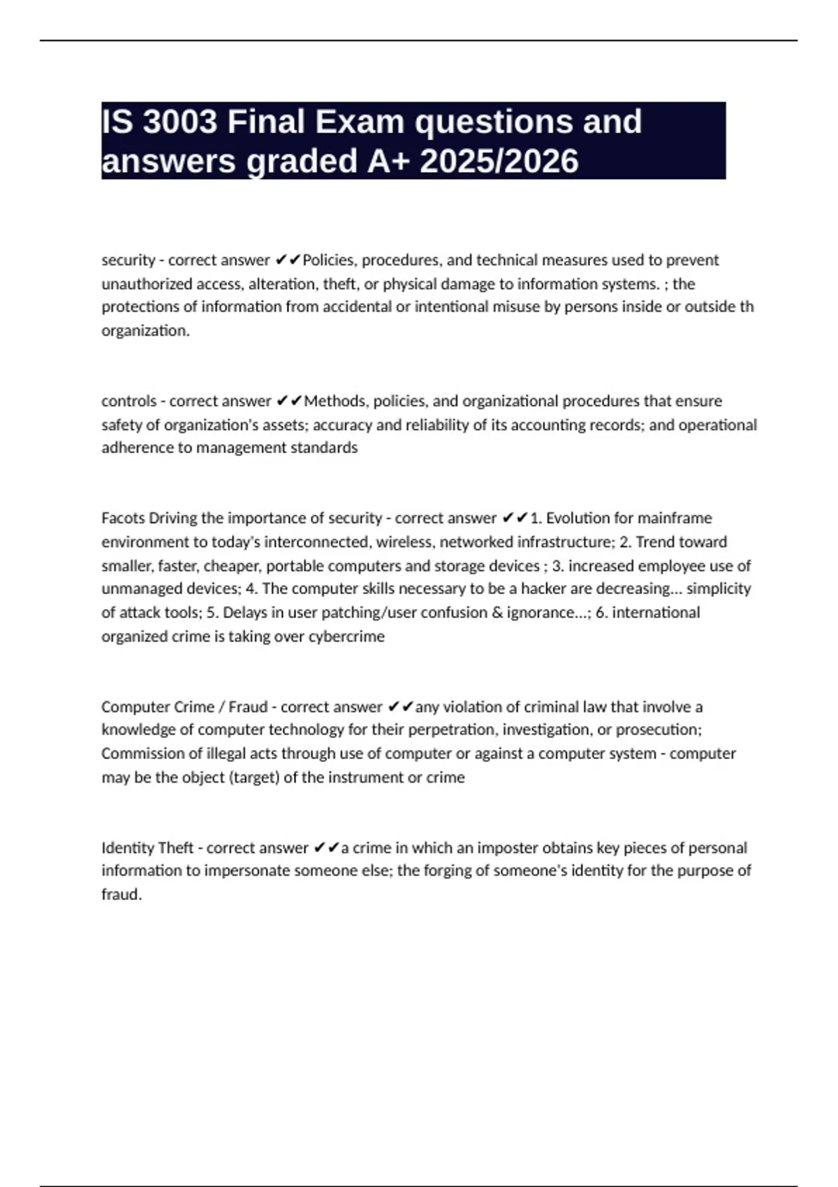 security - correct answer ✔✔Policies, procedures, and technical measures used to prevent