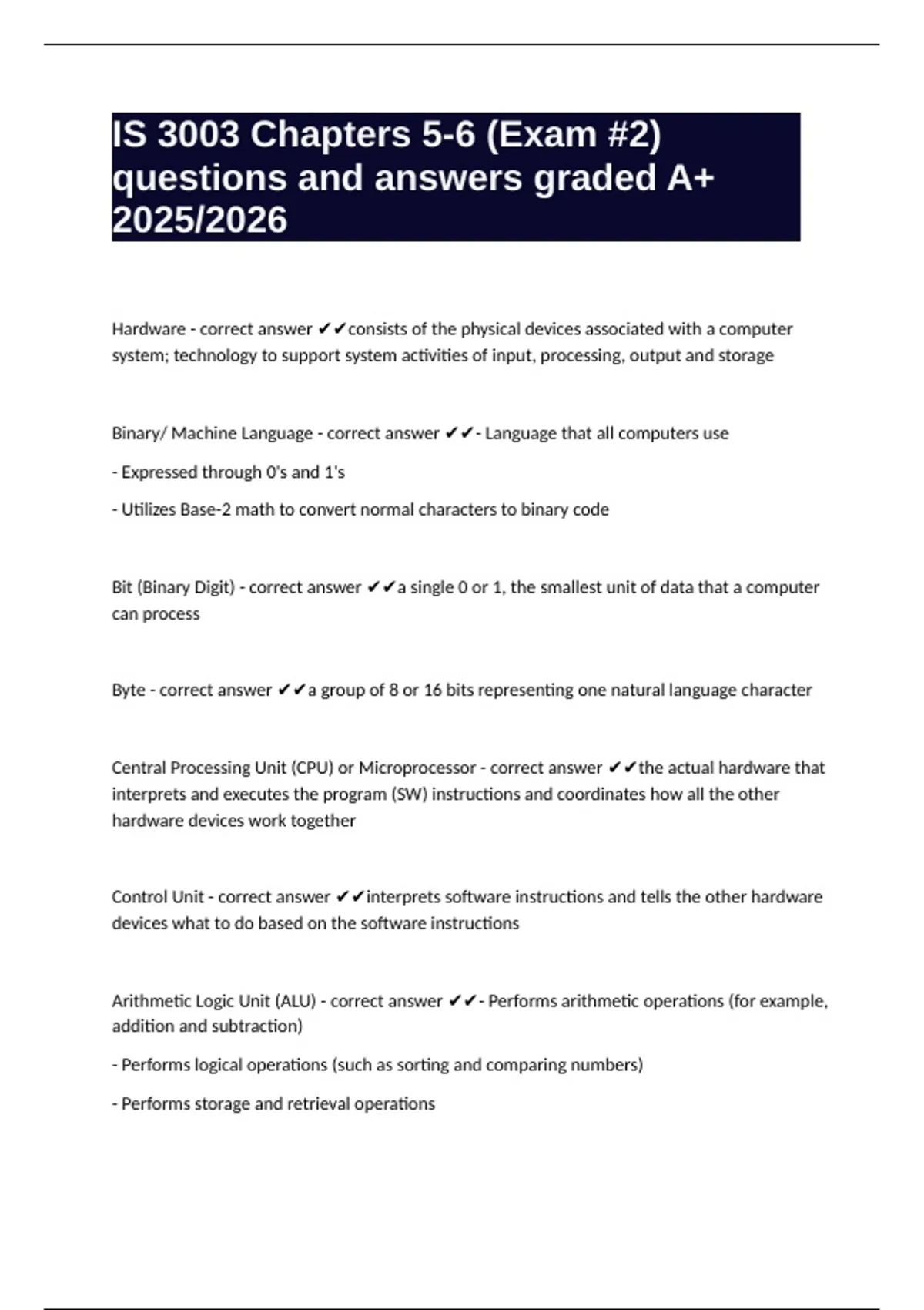 IS 3003 Chapters 5-6 (Exam #2) questions and answers graded A+ 2025/2026