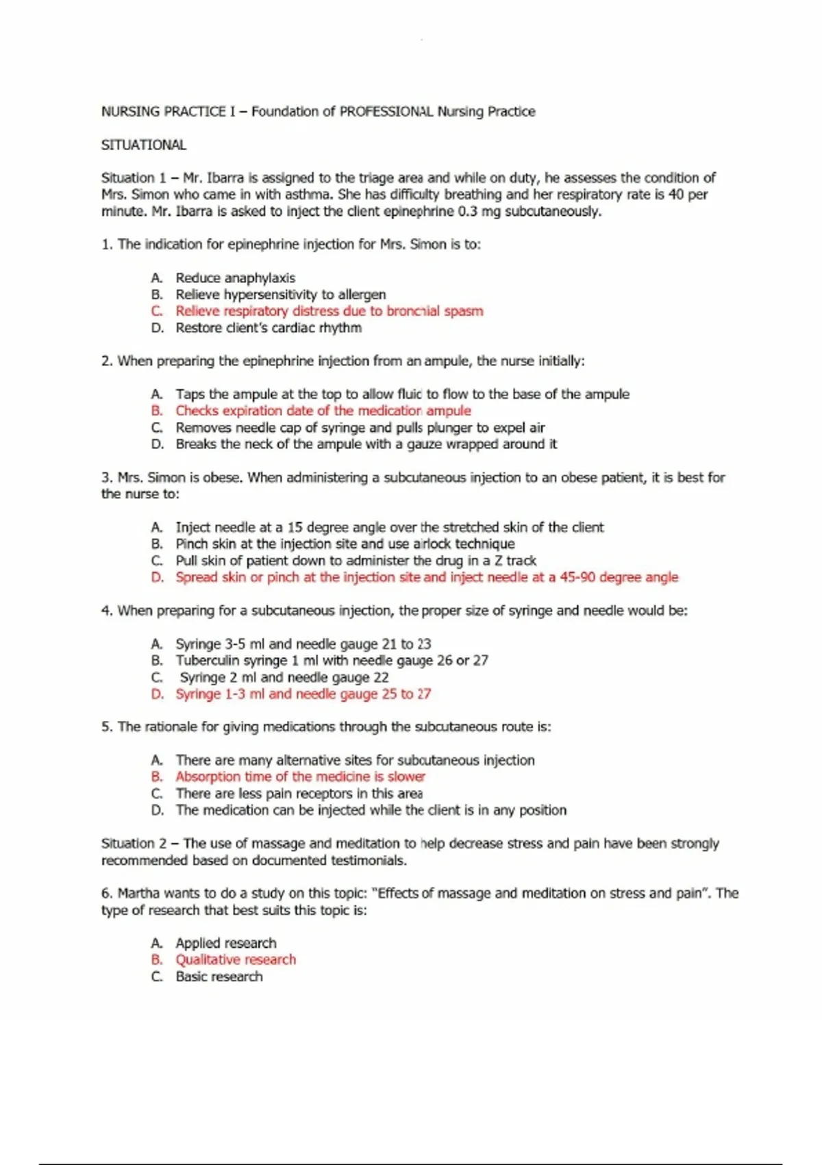 Nursing reviewer - Practice Exam 1- Foundation of professional nursing