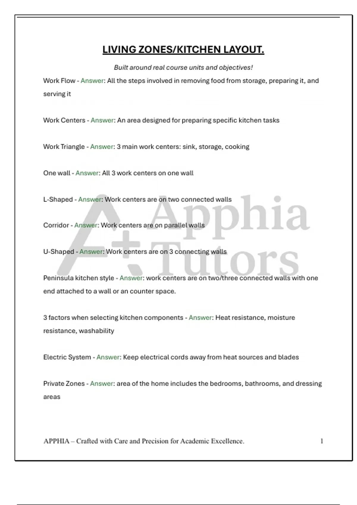 LIVING ZONES/KITCHEN LAYOUT. Built around real course units and objectives!