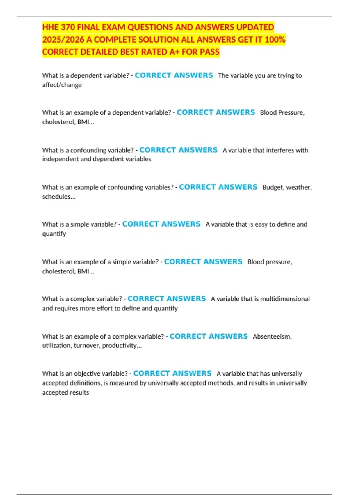 CORRECT DETAILED BEST RATED A+ FOR PASS