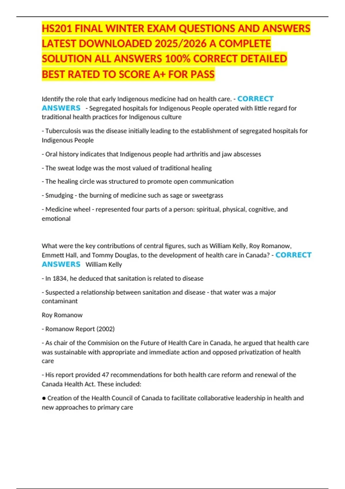 HS201 FINAL WINTER EXAM QUESTIONS AND ANSWERS