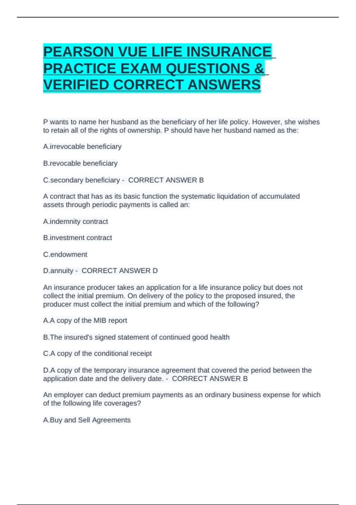 Term insurance as one of the choices. - CORRECT ANSWER B