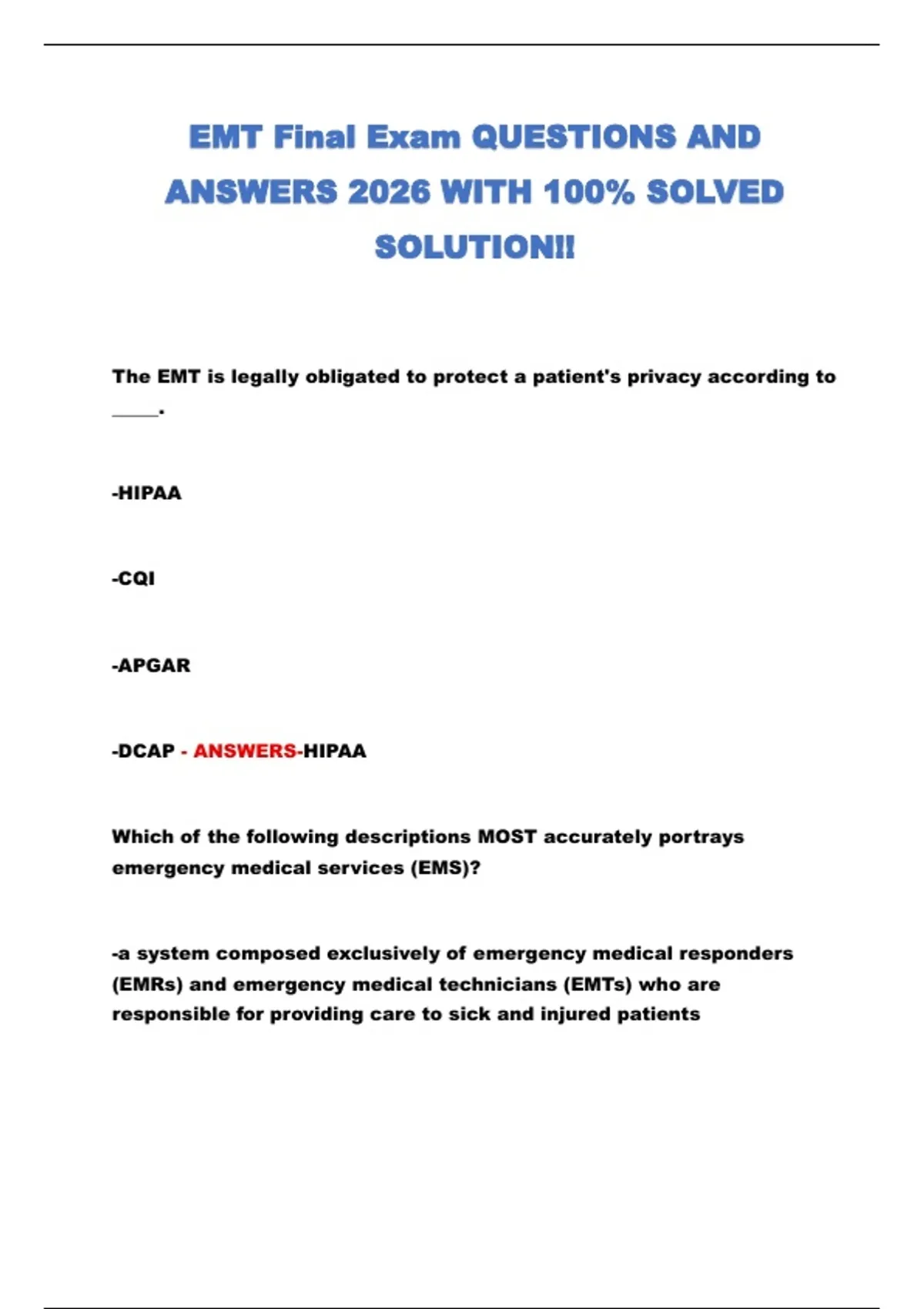-the only area the EMT is certified to provide patient care - ANSWERS-