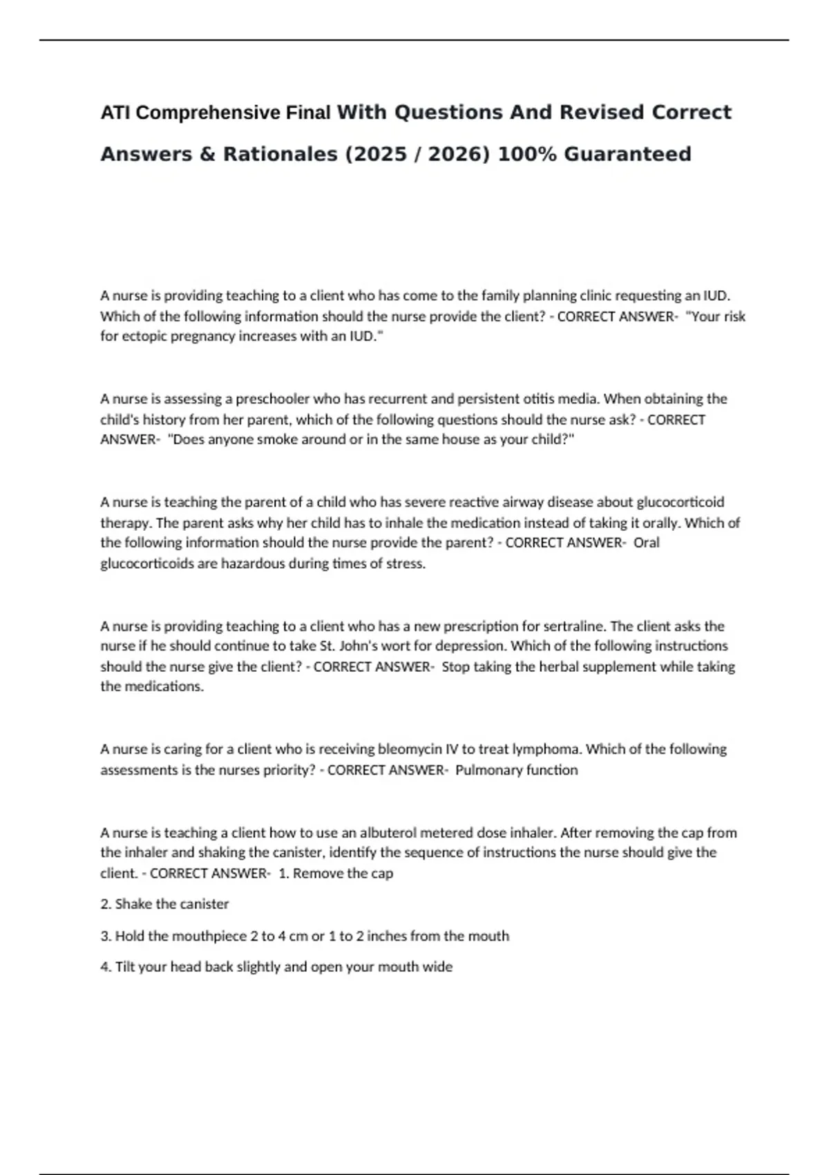 Answers & Rationales () 100% Guaranteed