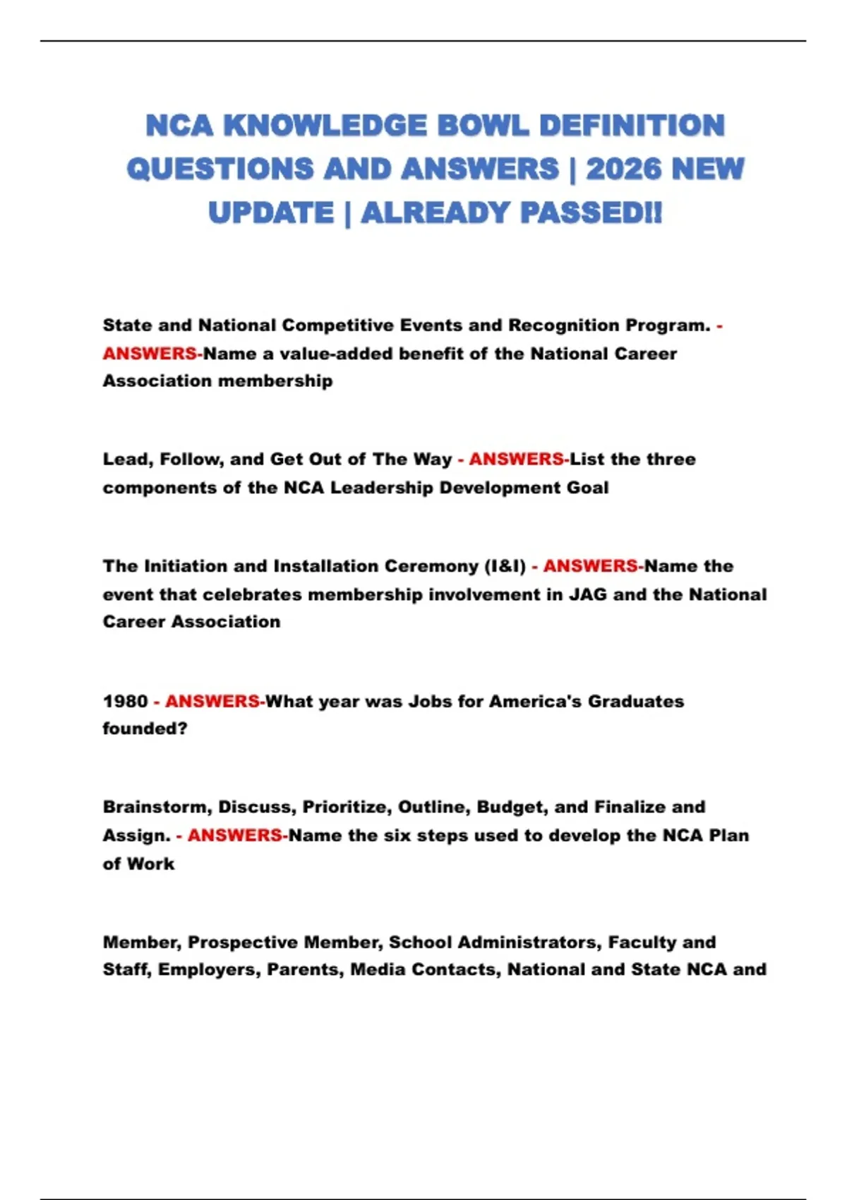 Assign. - ANSWERS-Name the six steps used to develop the NCA Plan
