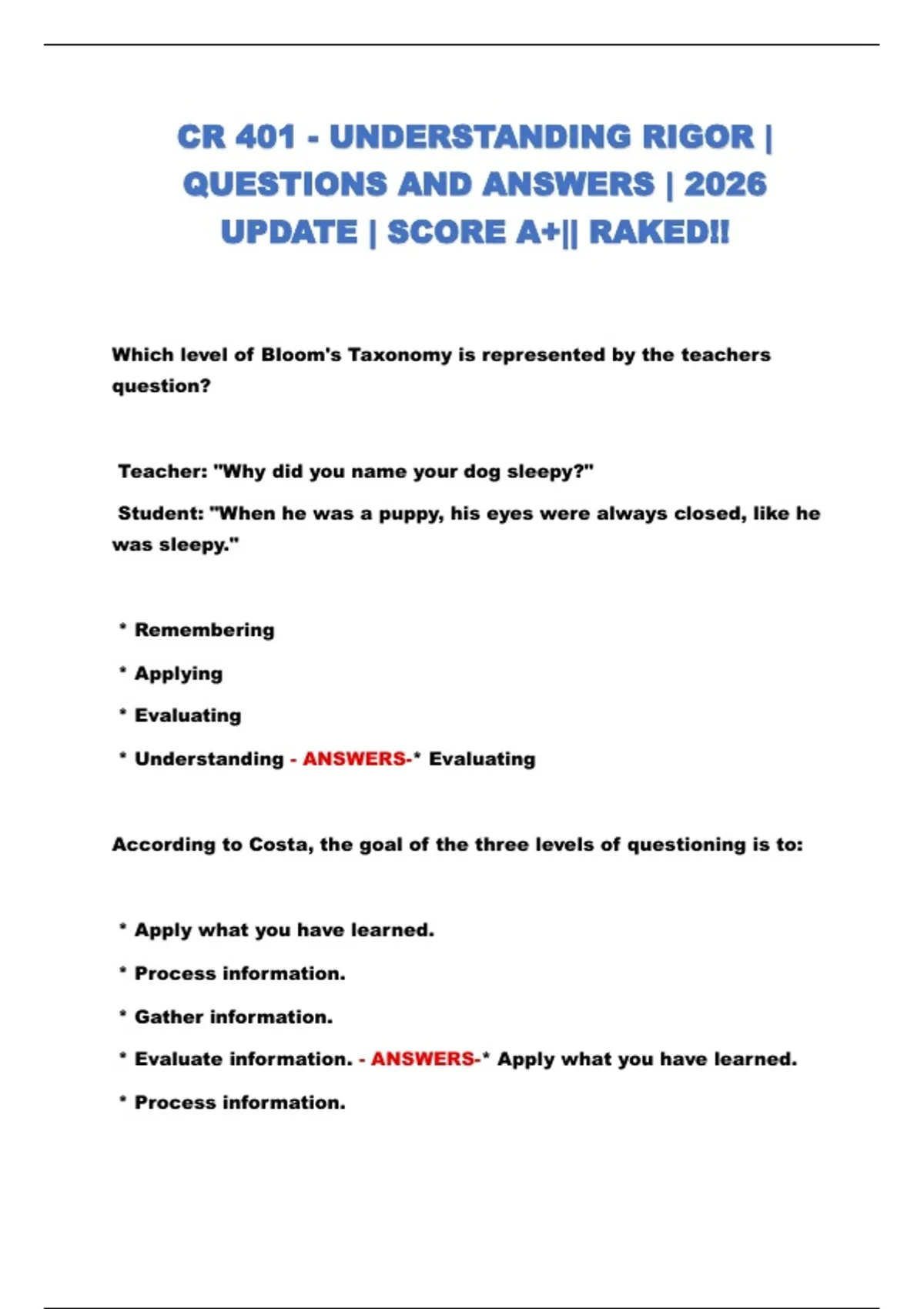CR 401 - UNDERSTANDING RIGOR | QUESTIONS AND ANSWERS | 2026 UPDATE | SCORE A+|| RAKED!!
