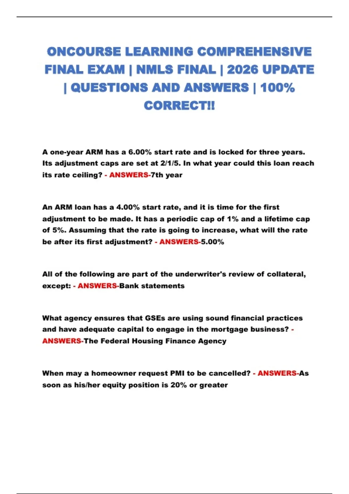 FINAL EXAM | NMLS FINAL | 2026 UPDATE