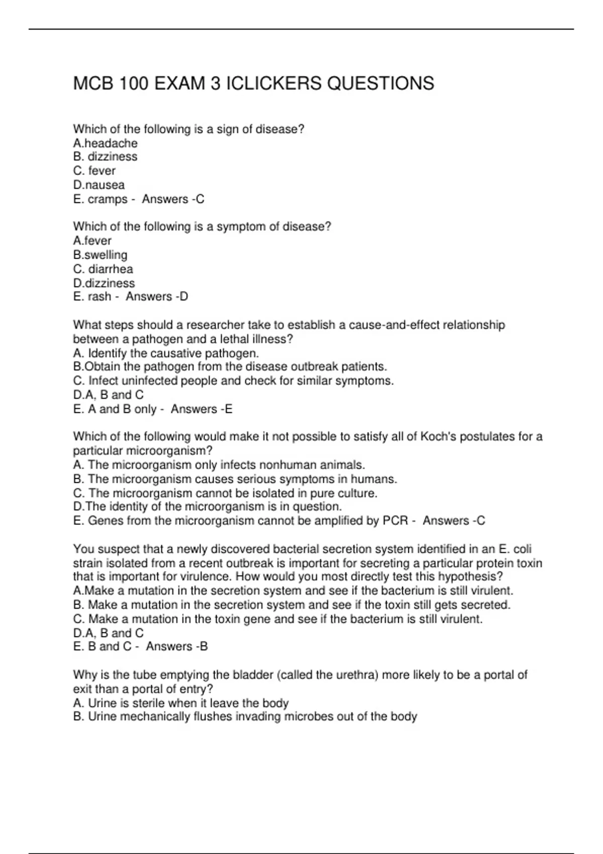MCB 100 EXAM 3 ICLICKERS QUESTIONS