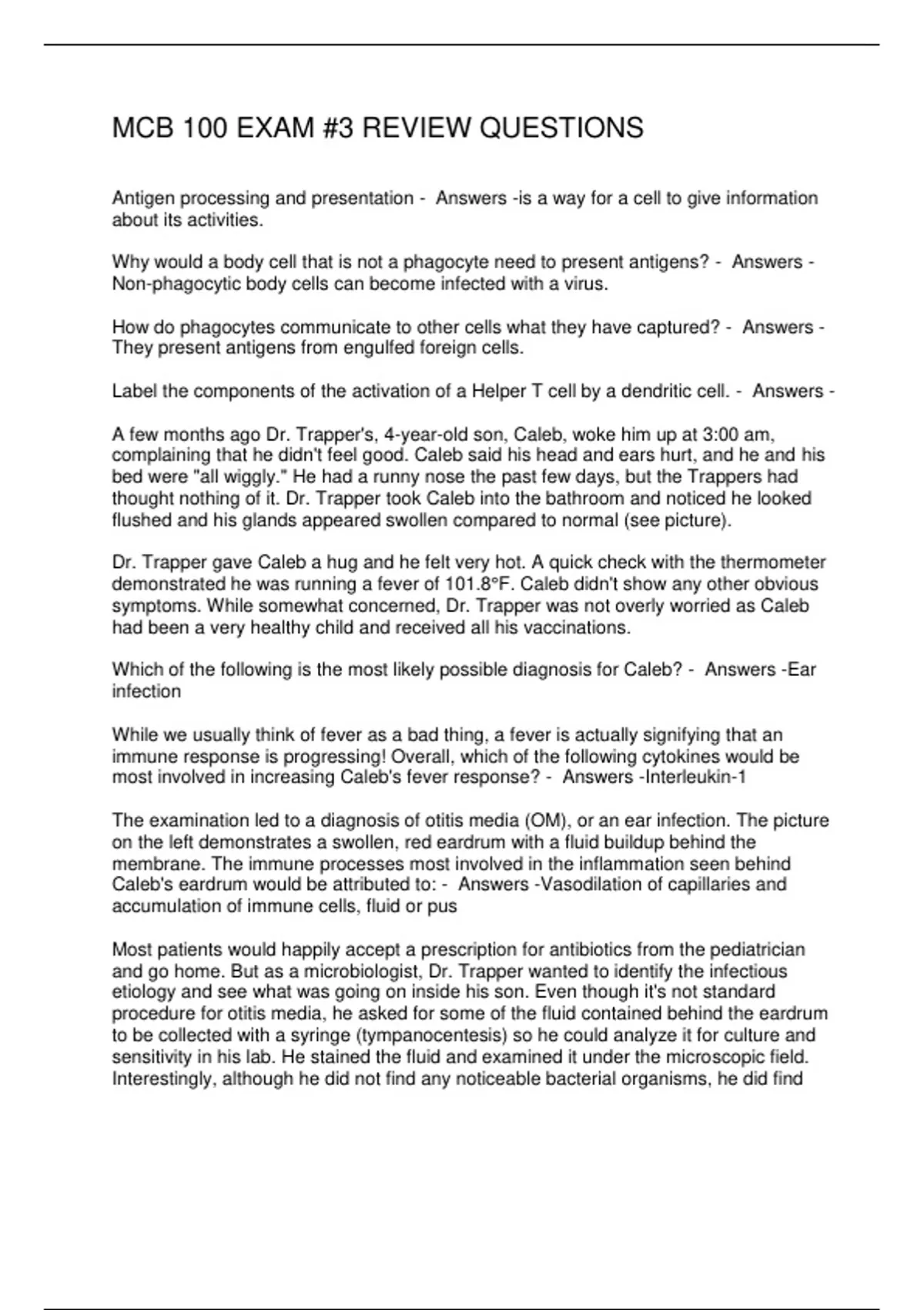 Which of the following is the most likely possible diagnosis for Caleb? - Answers -Ear