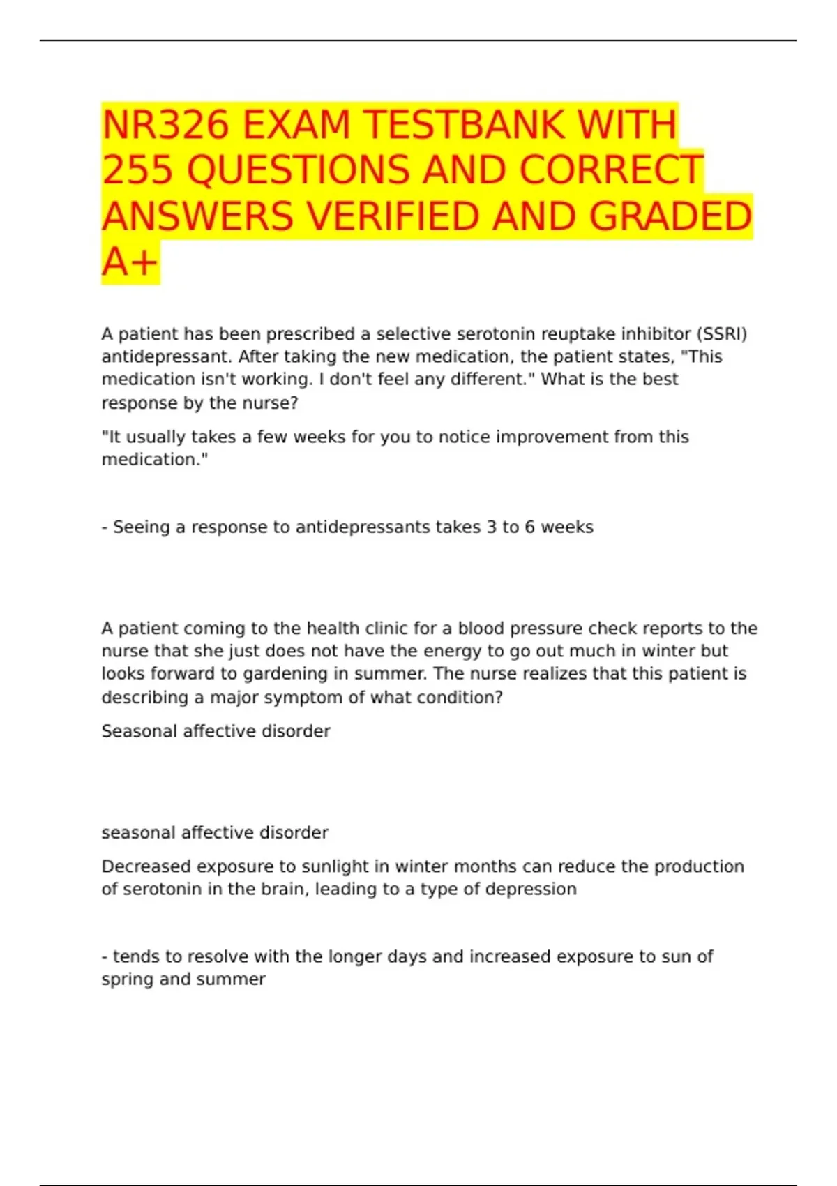 NR326 EXAM TESTBANK 255 QUESTIONS AND CORRECT ANSWERS VERIFIED AND GRADED A+