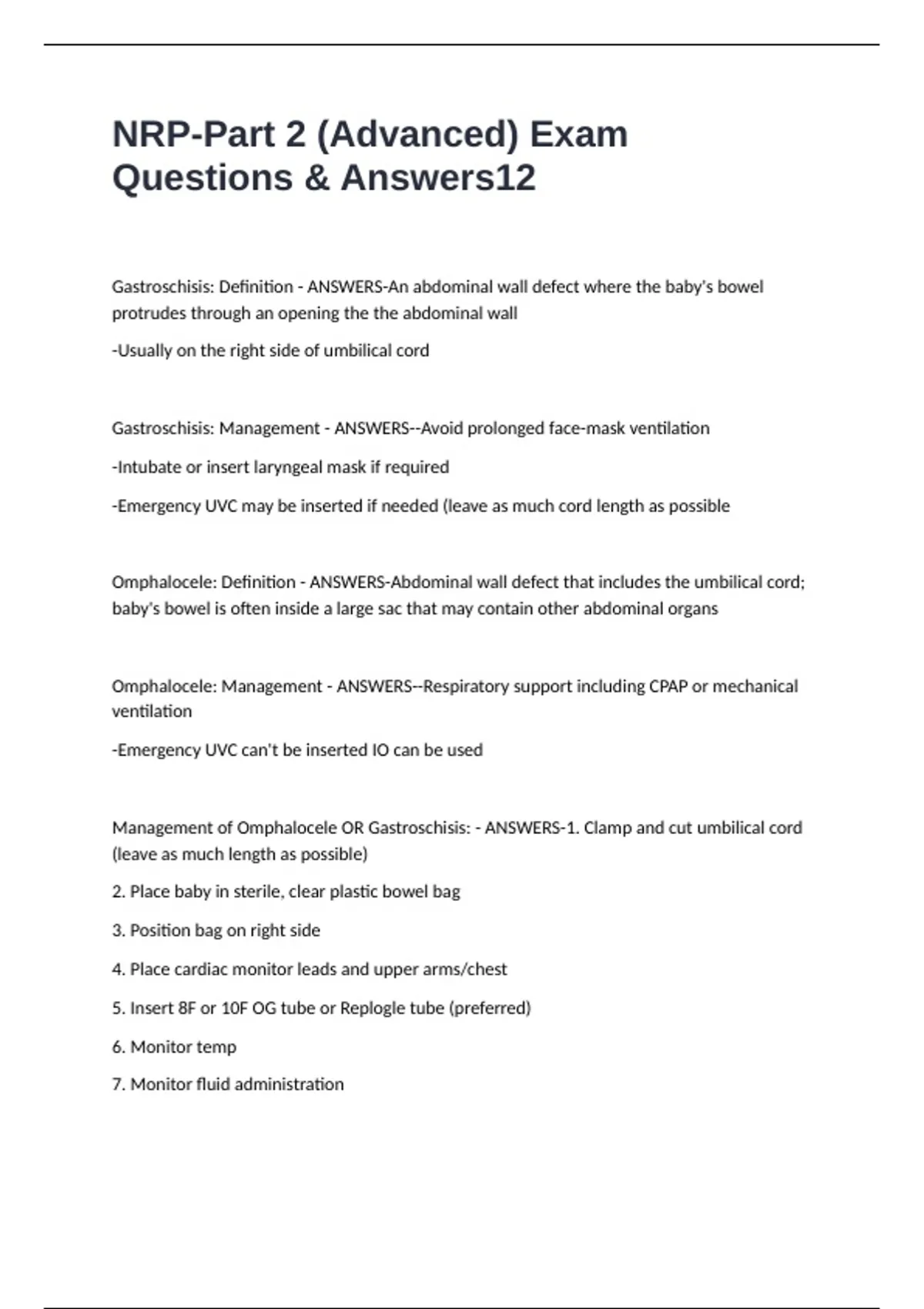 Gastroschisis: Management - ANSWERS--Avoid prolonged face-mask ventilation