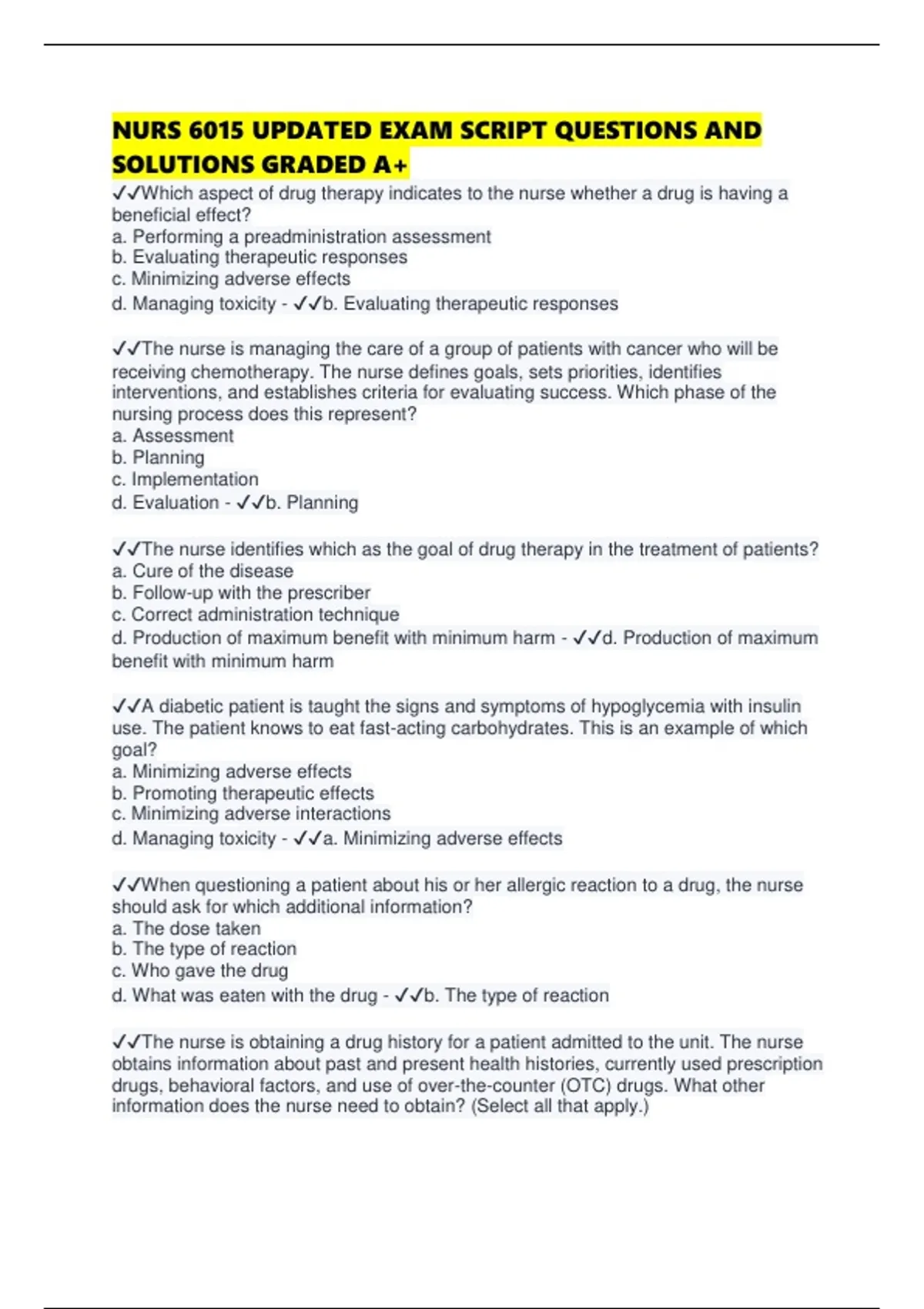 ✔✔The nurse identifies which as the goal of drug therapy in the treatment of patients?
