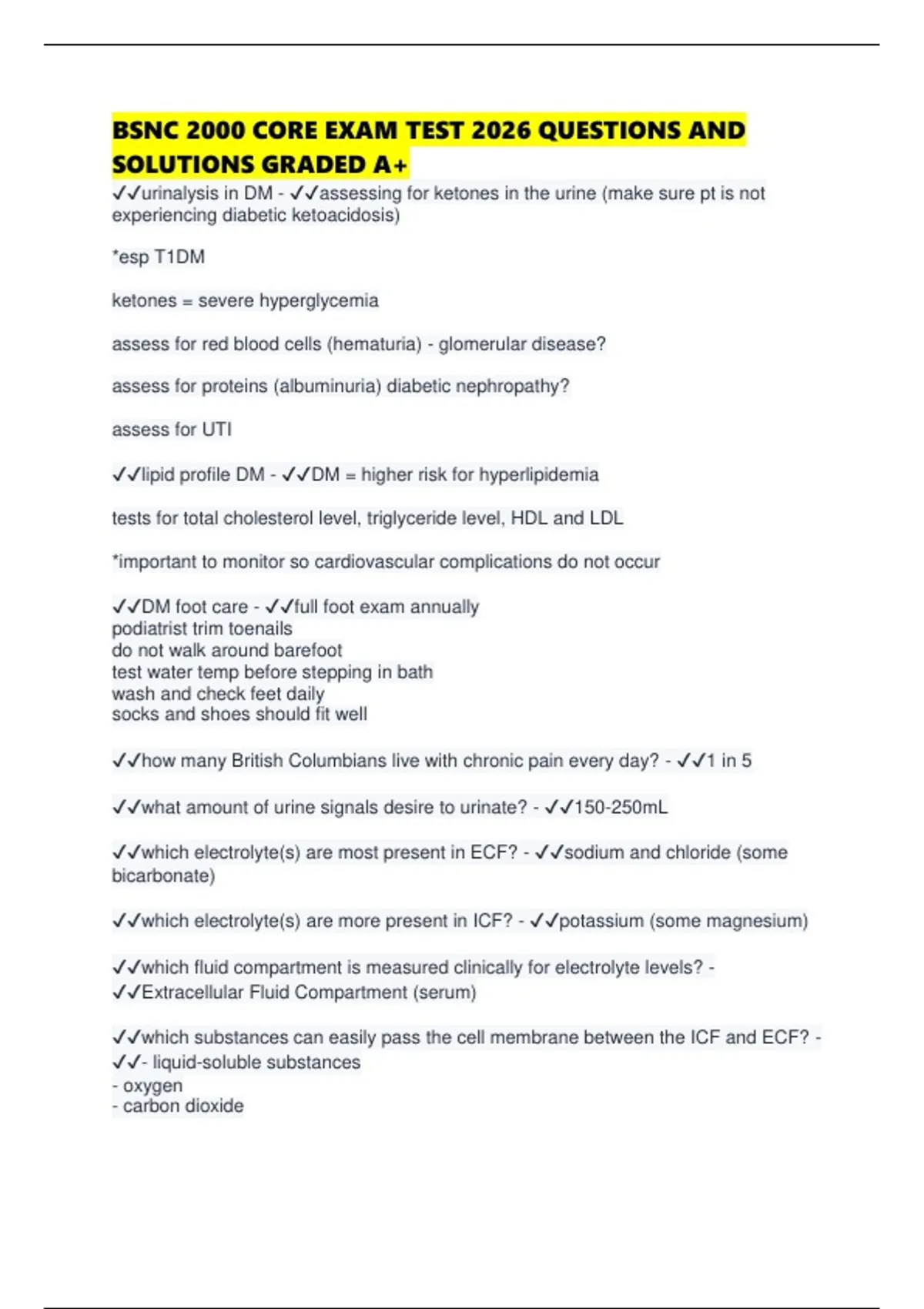 BSNC 2000 CORE EXAM TEST 2026 QUESTIONS AND SOLUTIONS GRADED A+