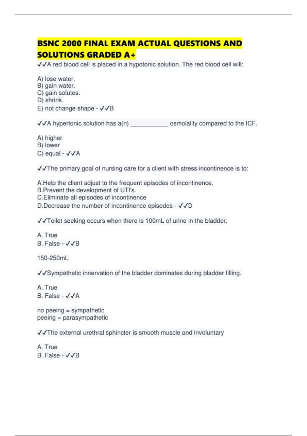 ✔✔The primary goal of nursing care for a client with stress incontinence is to: