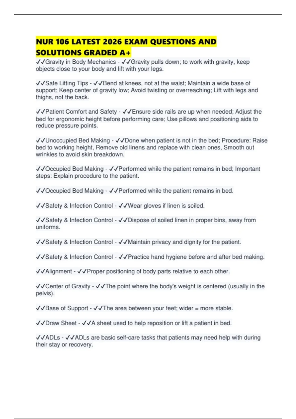 NUR 106 LATEST 2026 EXAM QUESTIONS AND SOLUTIONS GRADED A+