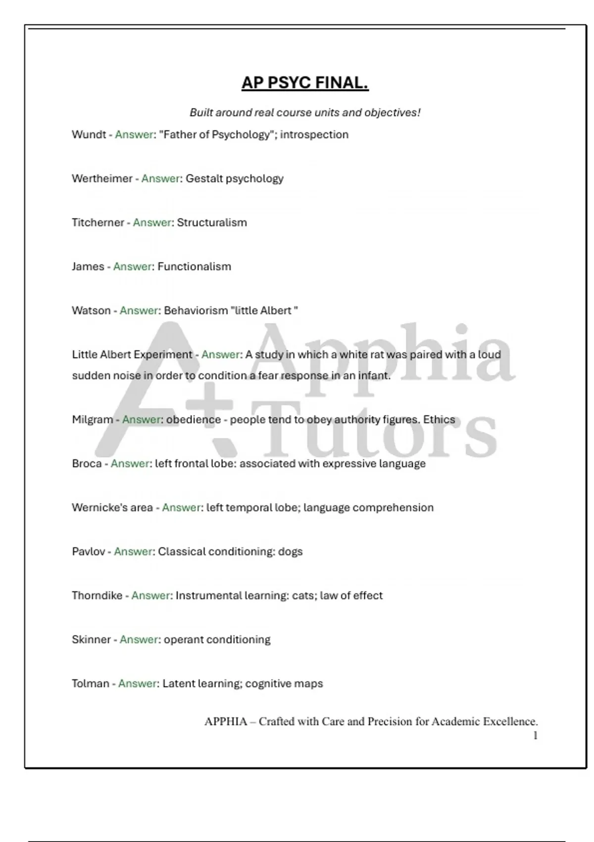 Ebbinghaus - Answer: created the forgetting curve and serial position effect in memory