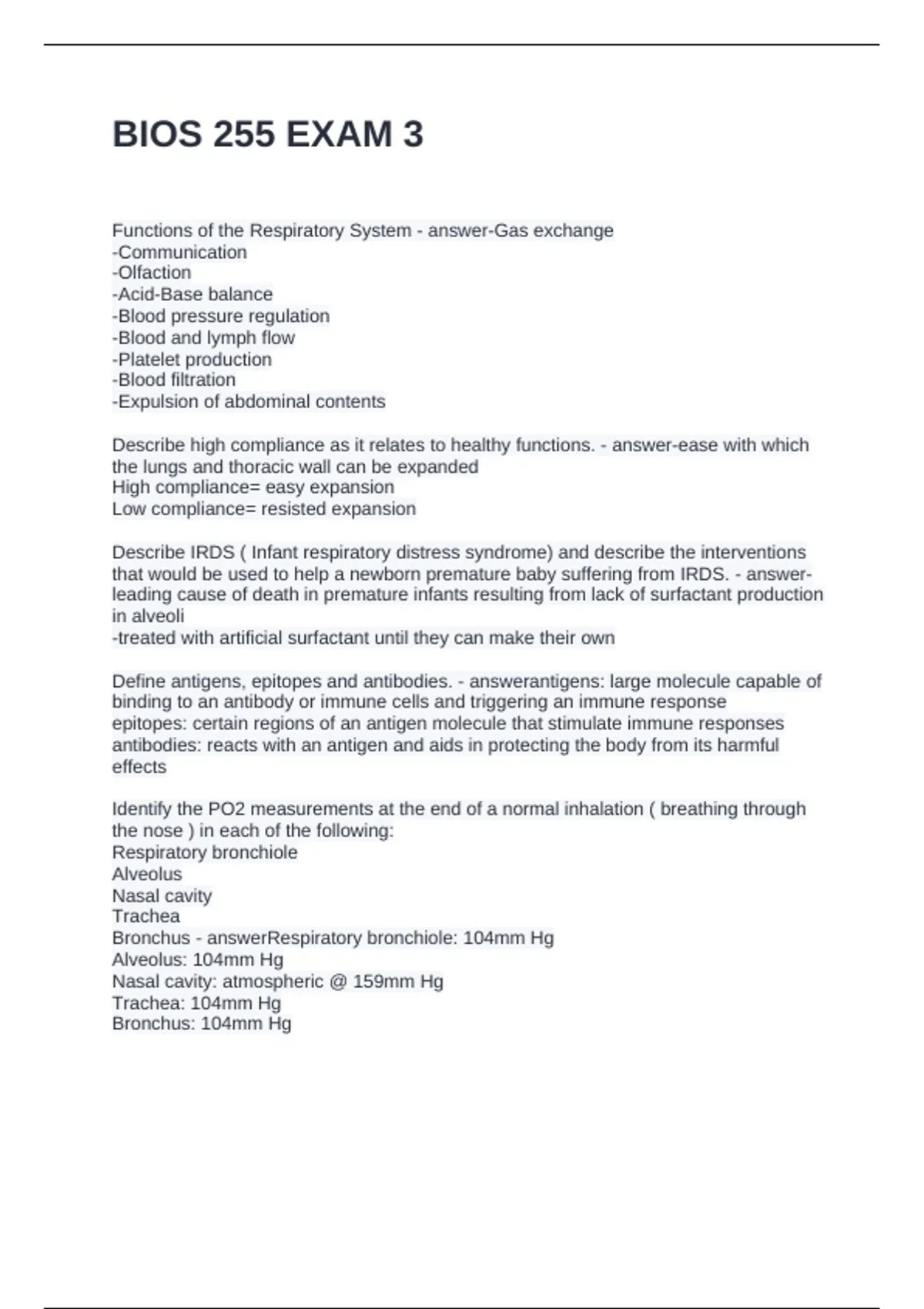 BIOS 255 EXAM 3 QUESTIONS AND ANSWERS GRADED A+