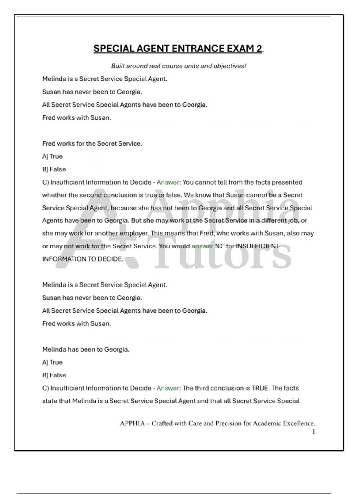 or may not work for the Secret Service. You would answer "C" for INSUFFICIENT