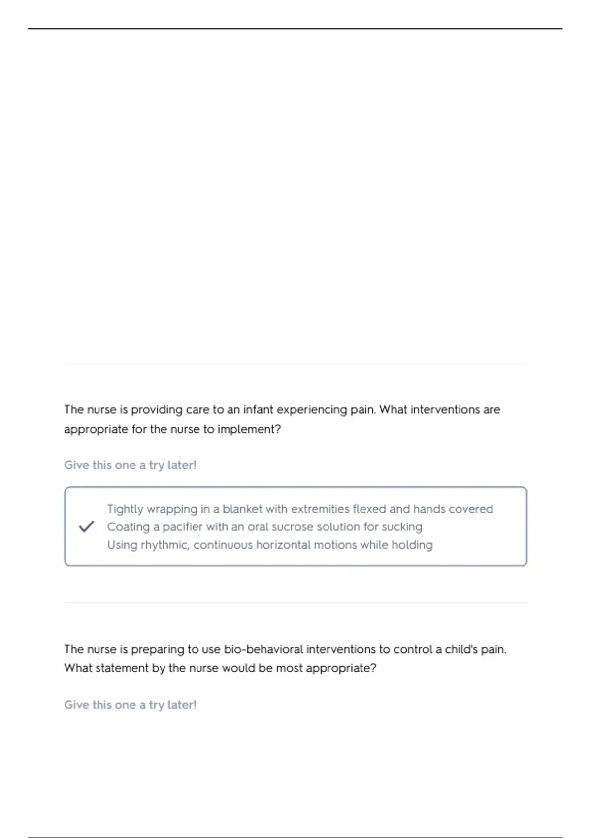 The nurse is preparing to use bio-behavioral interventions to control a child's pain.