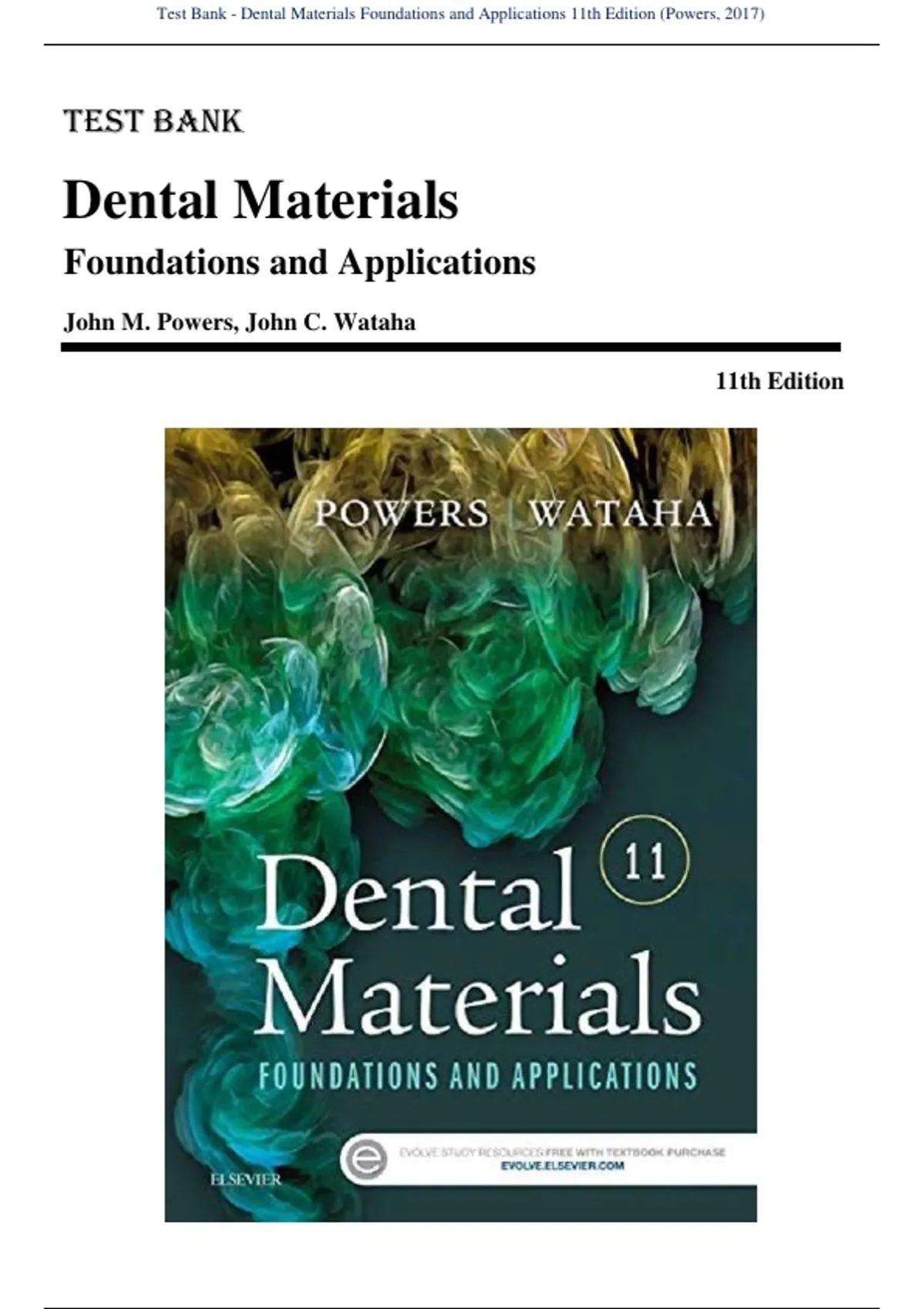 Test Bank for Dental Materials Foundations and Applications 11th Edition by John M. Powers, John C. Wataha This is not a book, but a test bank is a collection of pre-prepared exam questions and answers, designed to help teachers assess students' knowledge and understanding of course material.