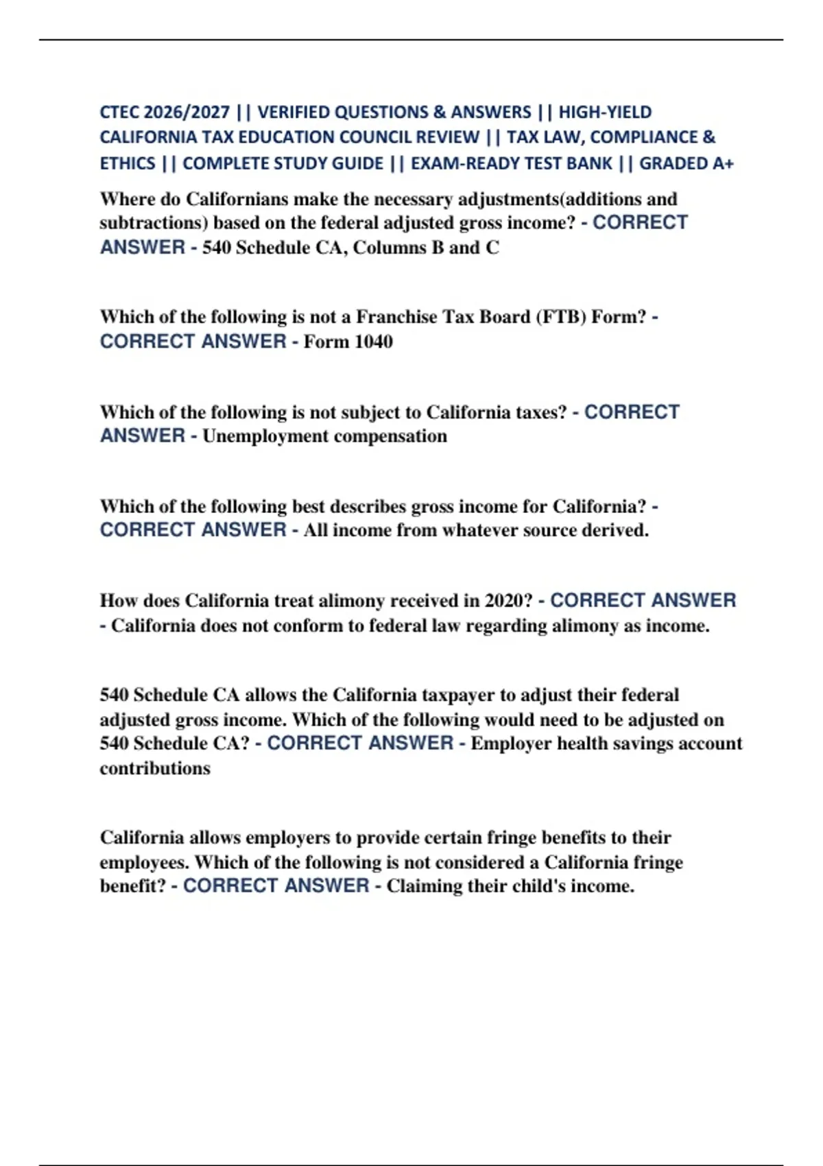 in California? - CORRECT ANSWER - FTB Pub 1001