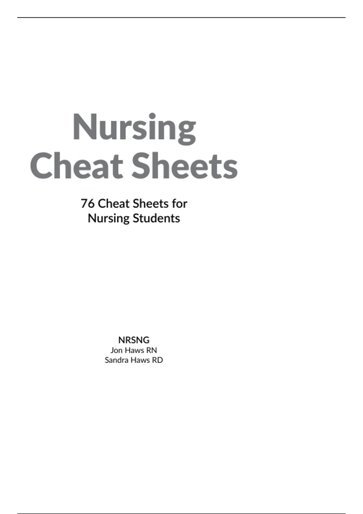 Nursing Cheat Sheets NRSNG Jon Haws RN Sandra Haws RD 76 Cheat Sheets for Nursing Students