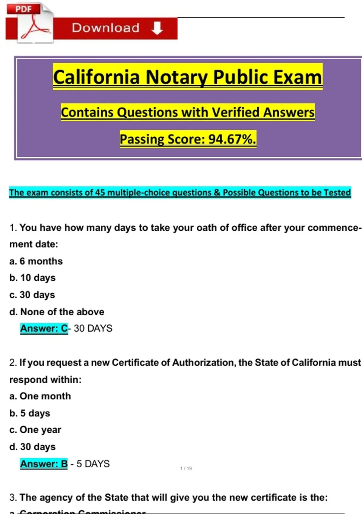 Passing Score: 94.67%.