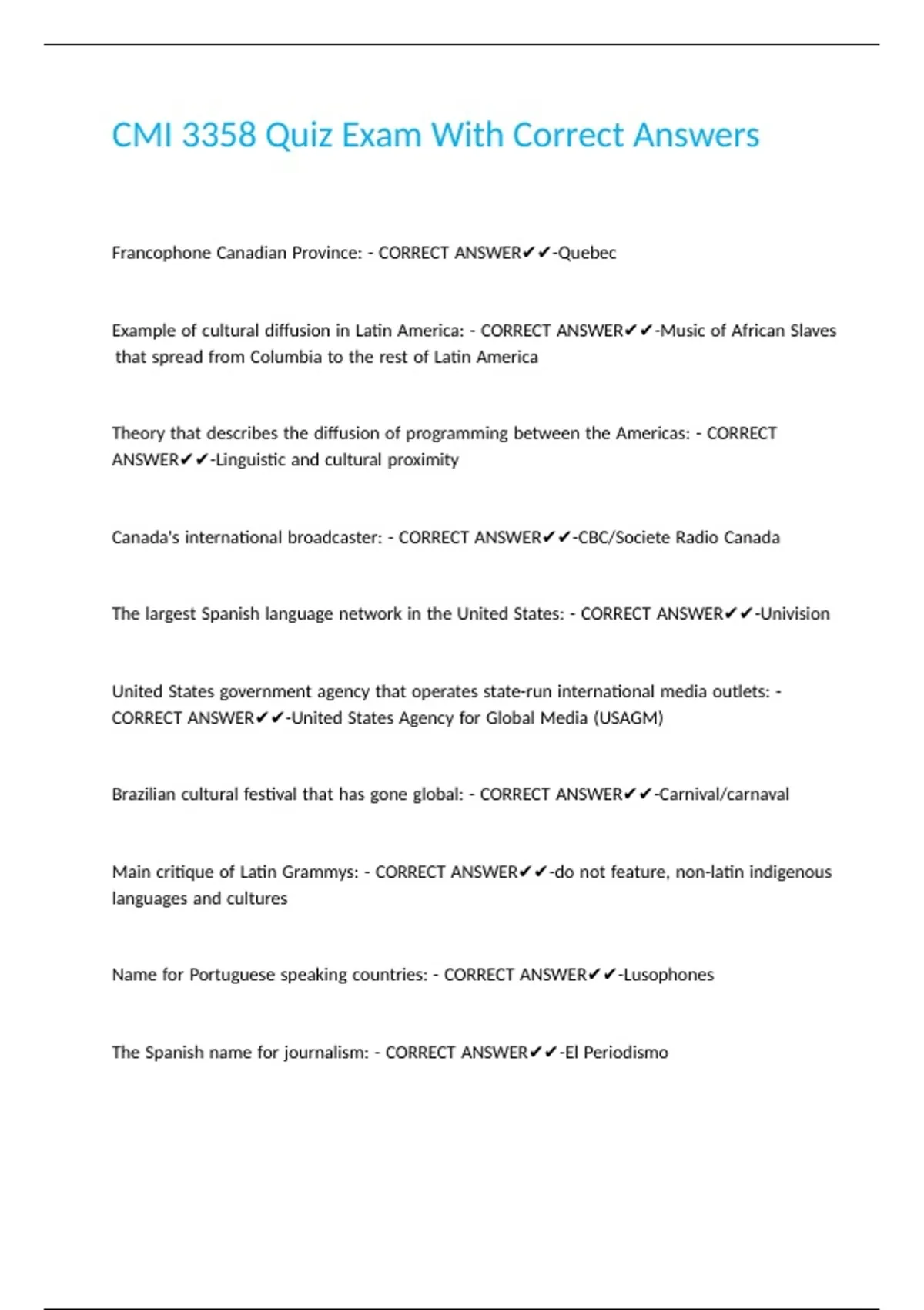 Canada's |international |broadcaster: |- |CORRECT |ANSWER✔✔-CBC/Societe |Radio |Canada