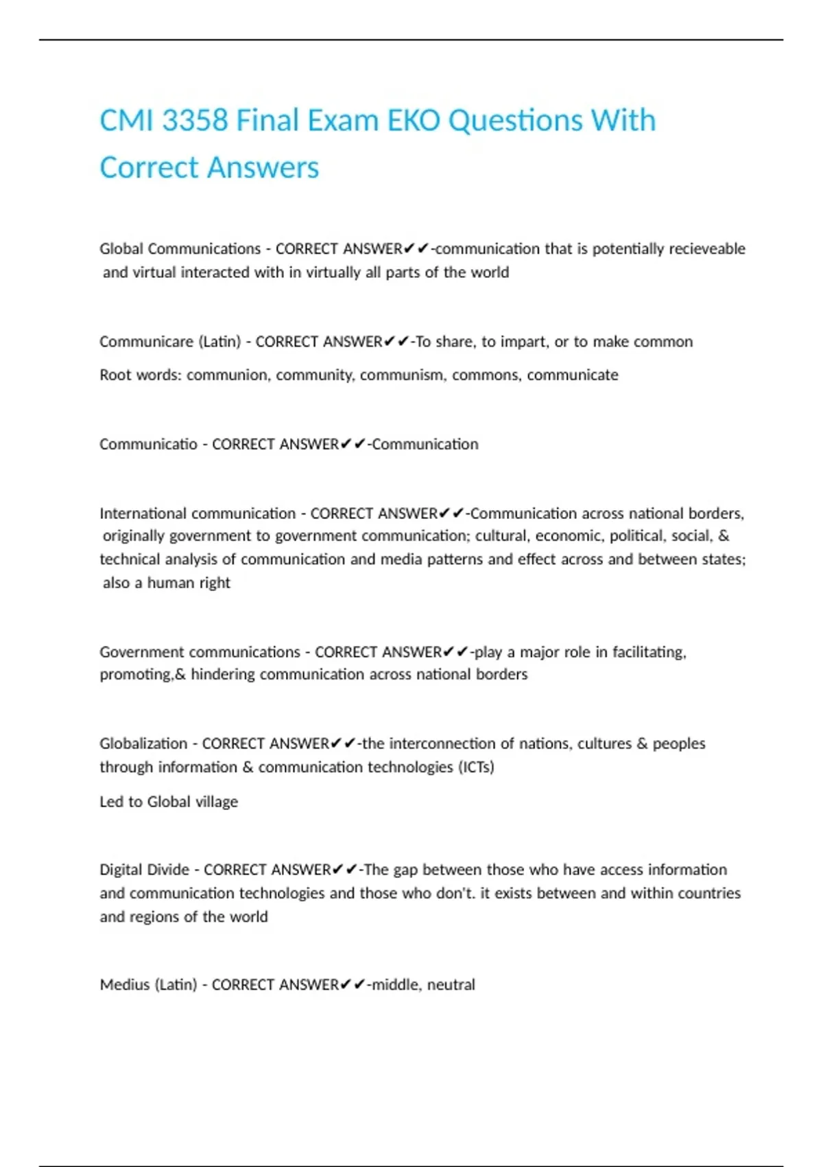 CMI 3358 Final Exam EKO Questions With Correct Answers