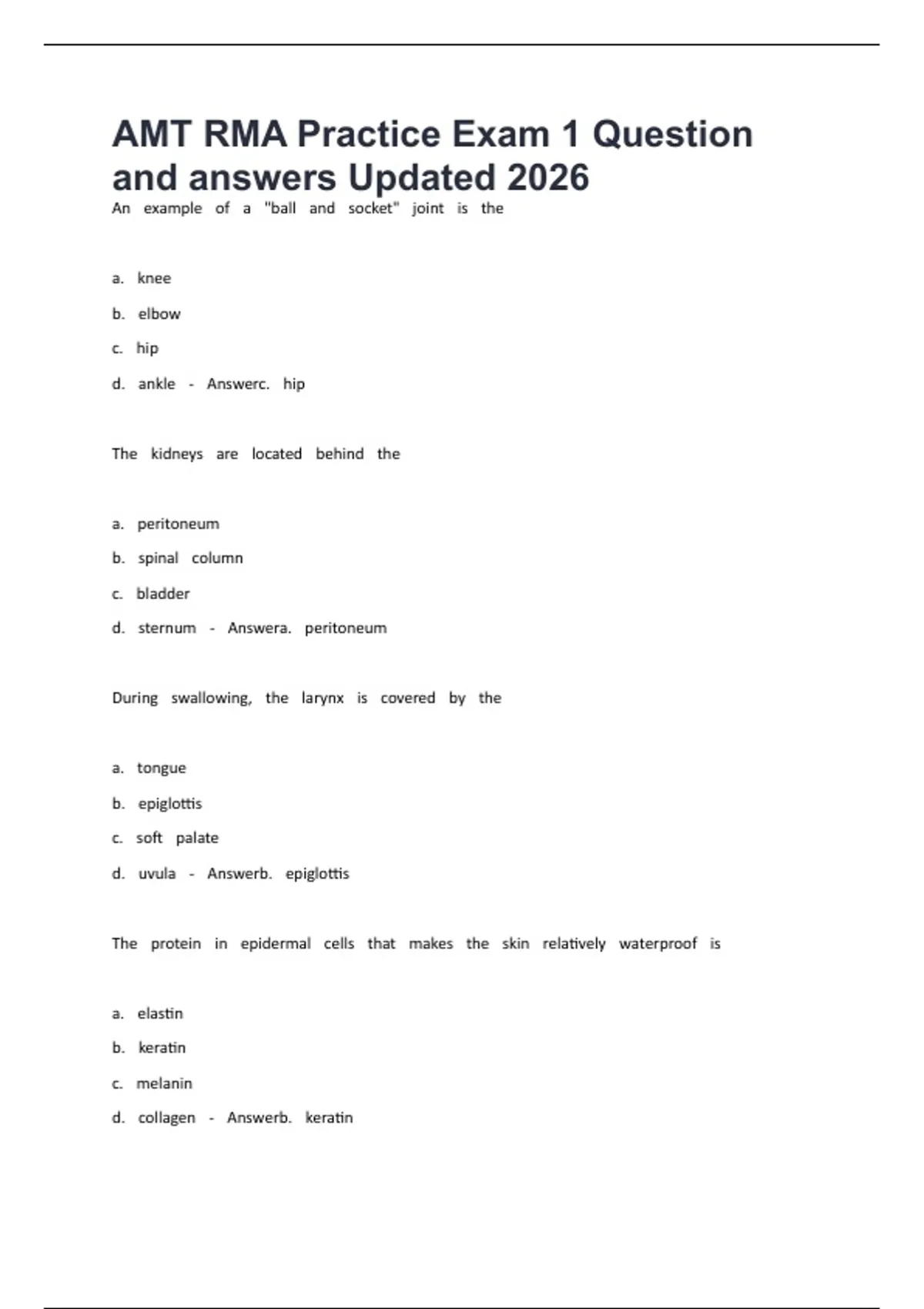 AMT RMA Practice Exam 1 Question and answers Updated 2026