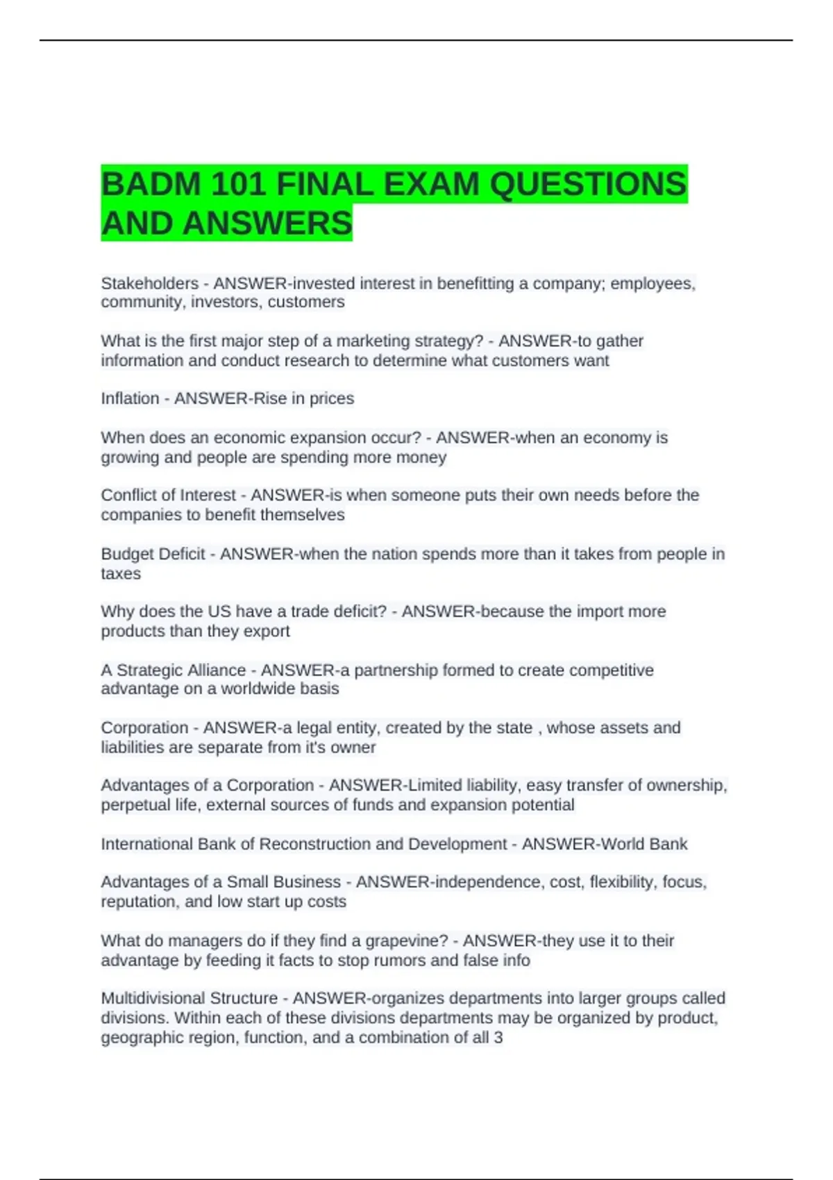 BADM 101 FINAL EXAM QUESTIONS