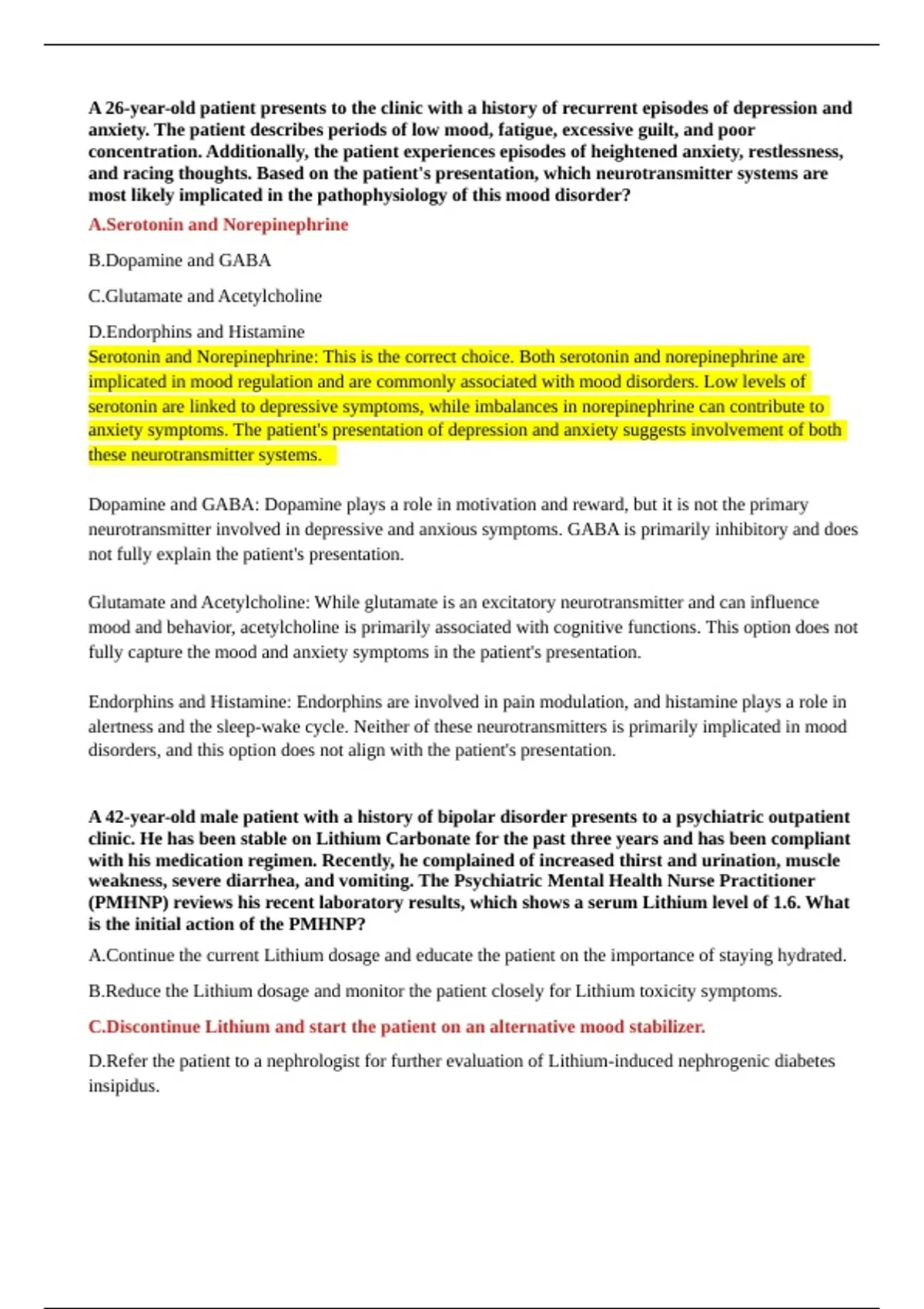 Correct answer: Serotonin and Dopamine Mood disorders, including bipolar disorder, often involve