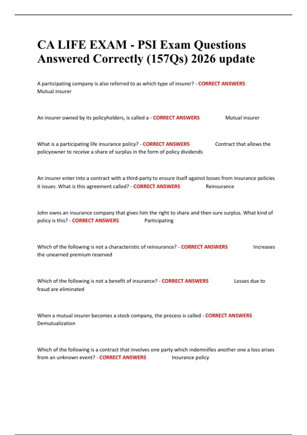 What is a participating life insurance policy? - CORRECT ANSWERS Contract that allows the