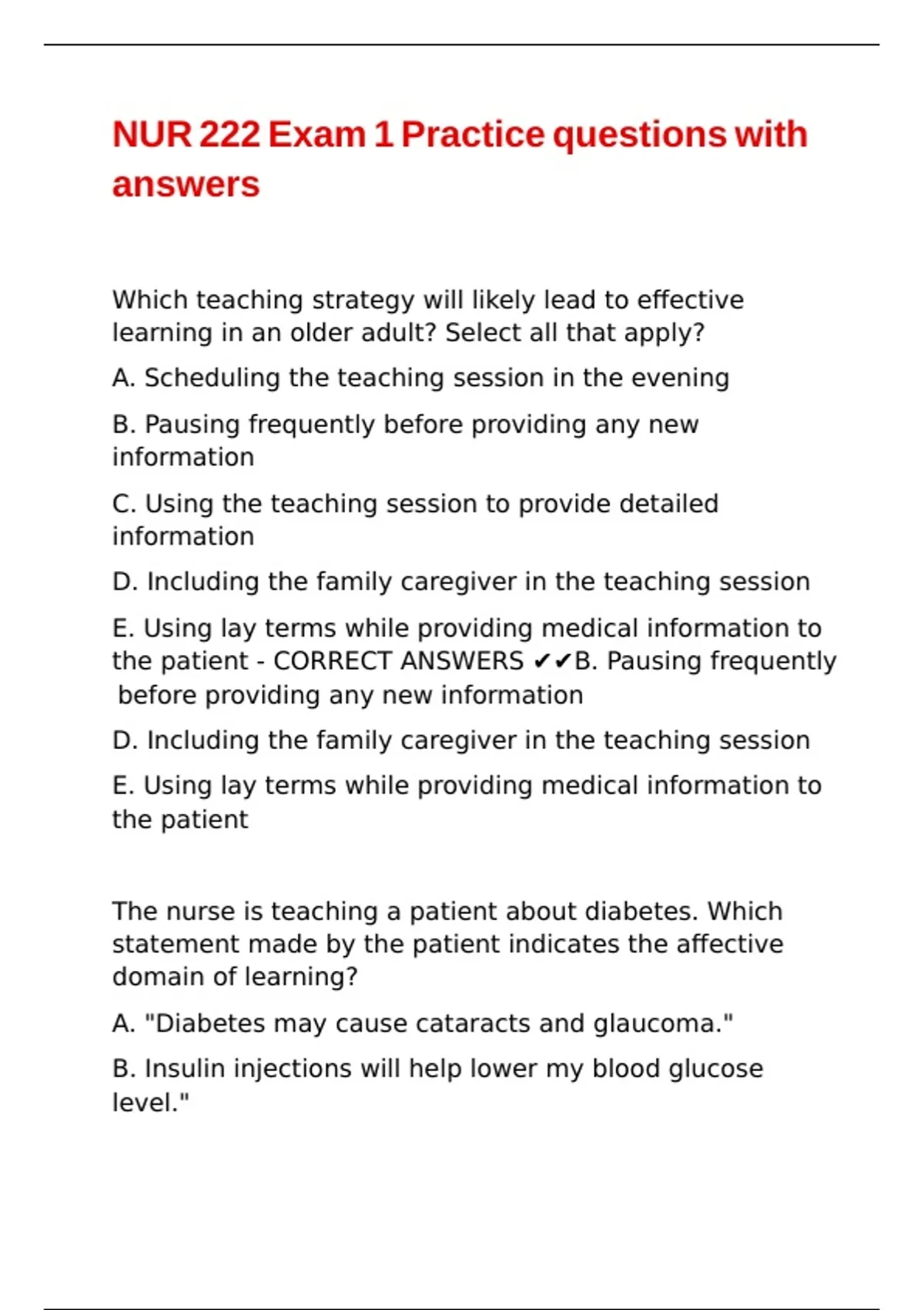 CORRECT ANSWERS ✔✔B. Verbally explaining to the