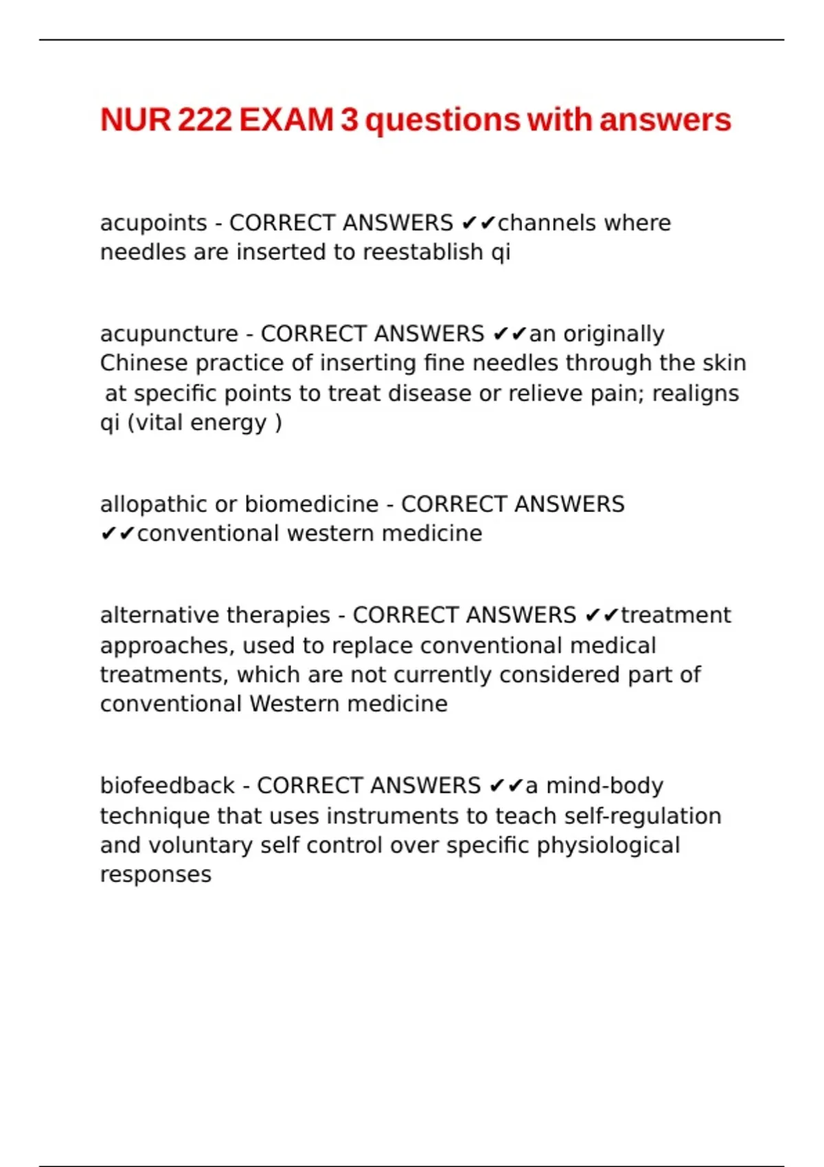 acupuncture - CORRECT ANSWERS ✔✔an originally |\ |\ |\ |\ |\ |\