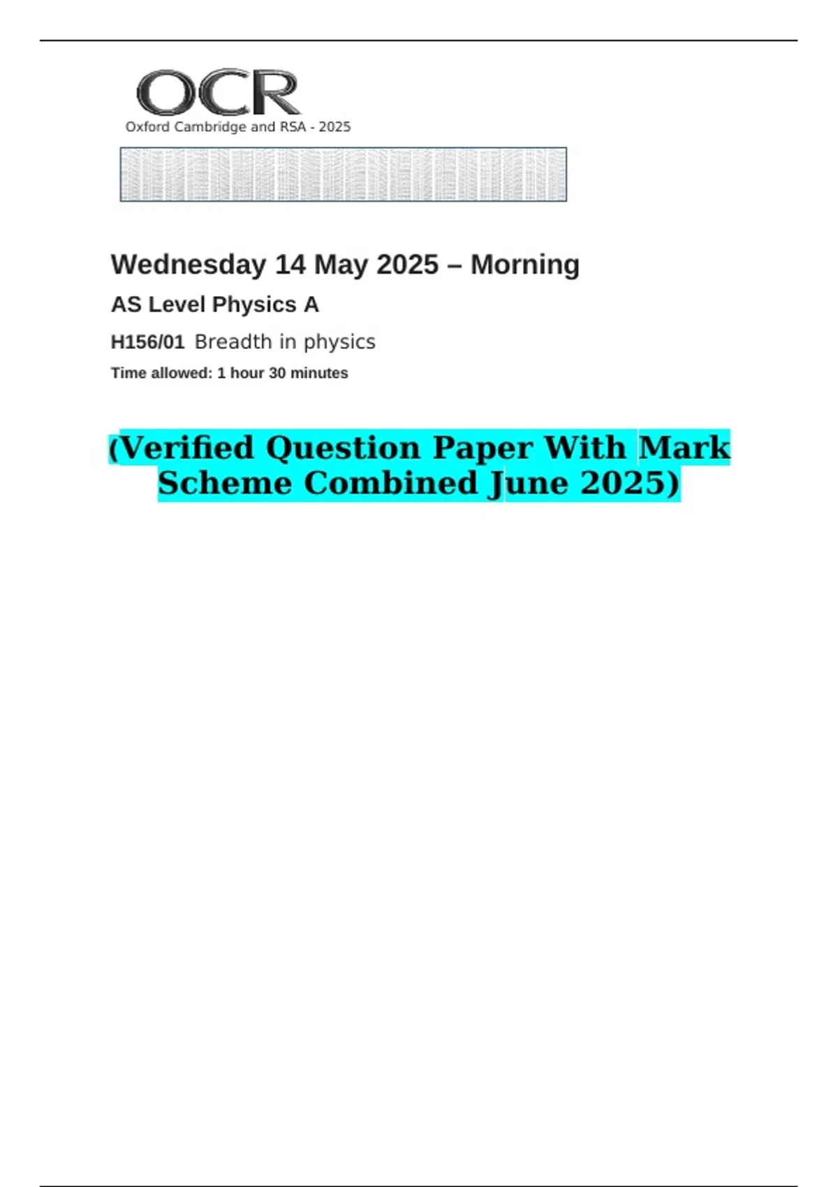 2025 AS Level Physics A H156/01 Breadth in physics (Verified Question Paper With Mark Scheme Combined June 2025)