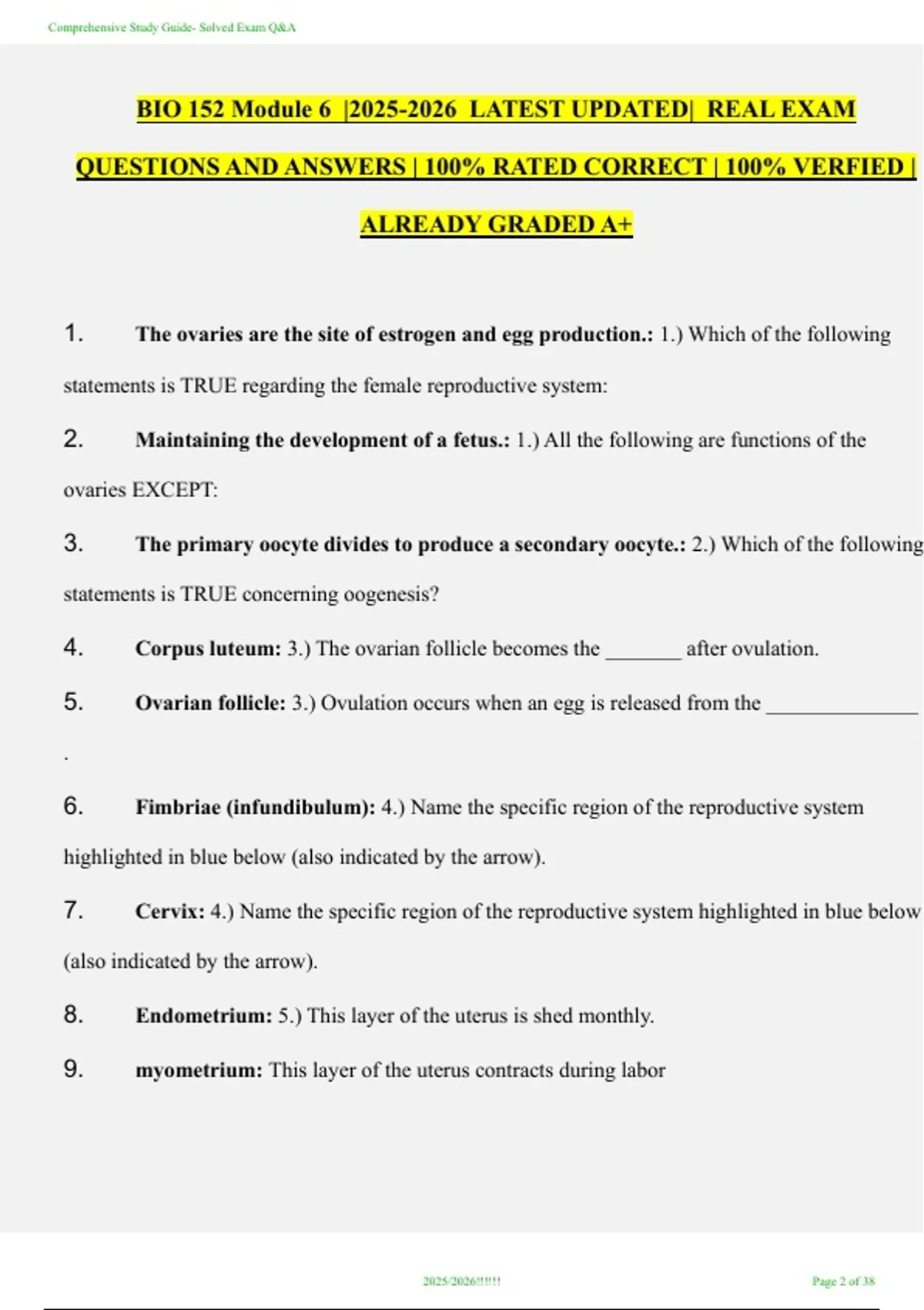 BIO 152 Module 6 |2025-2026 LATEST UPDATED| REAL EXAM