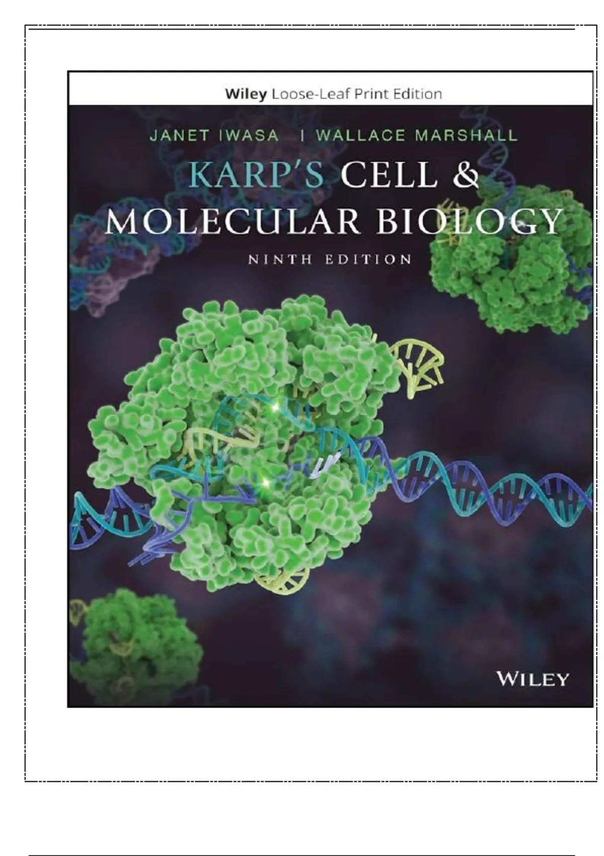 TEST BANK FOR Karp's Cell and Molecular Biology 9th Edition by Gerald Karp, Janet Iwasa, Wallace Marshall ISBN: 978-1119598244 COMPLETE GUIDE ALL CHAPTERS COVERED 100% VERIFIED A+ GRADE ASSURED !!!!NEW LATEST UPDATE!!!!GUARANTEED PASS!!!!!