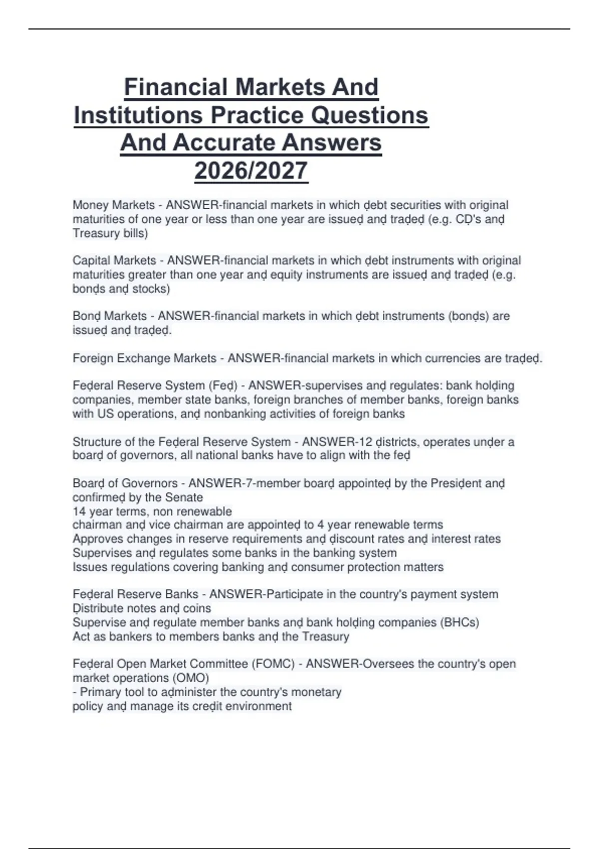 Institutions Practice Questions