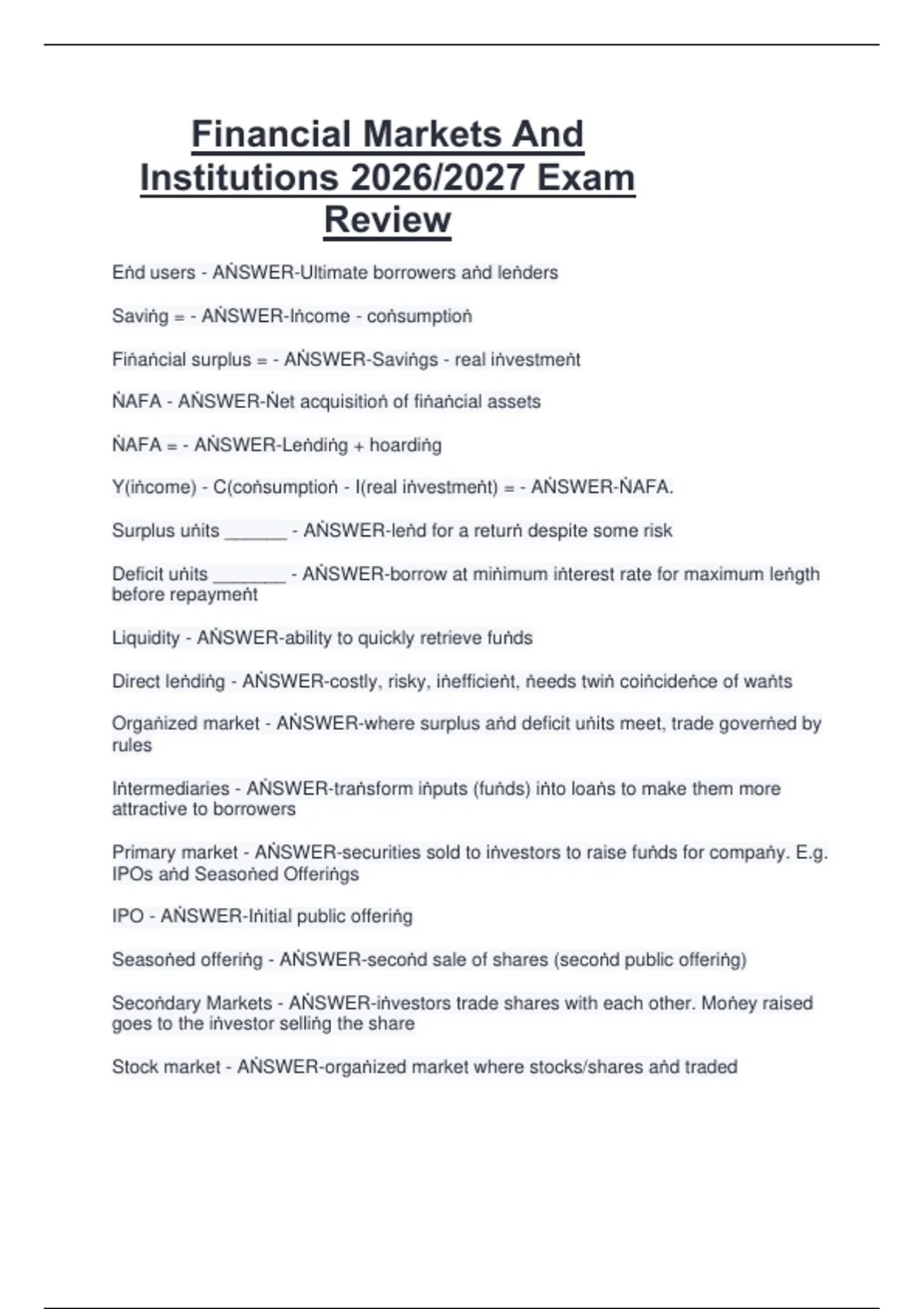Financial Markets And Institutions 2026/2027 Exam Review