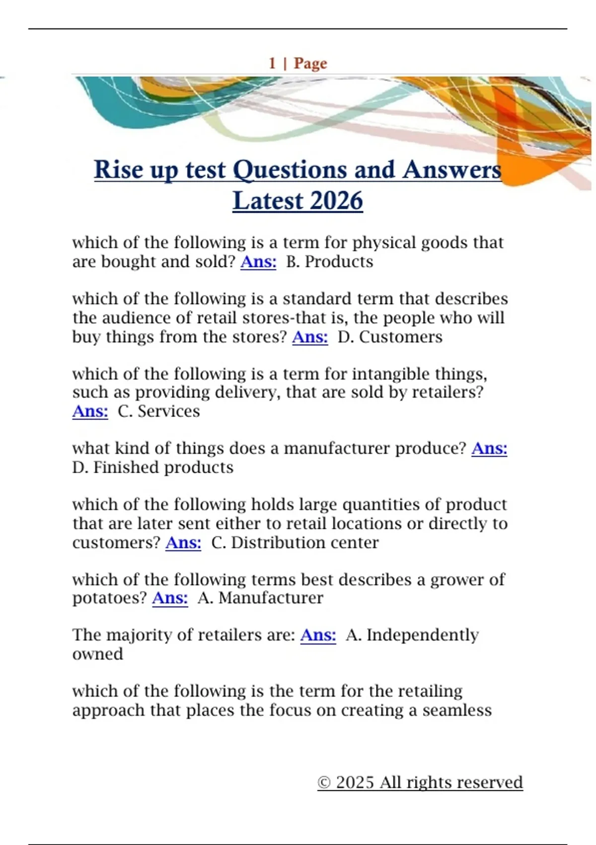Rise up test Questions and Answers
