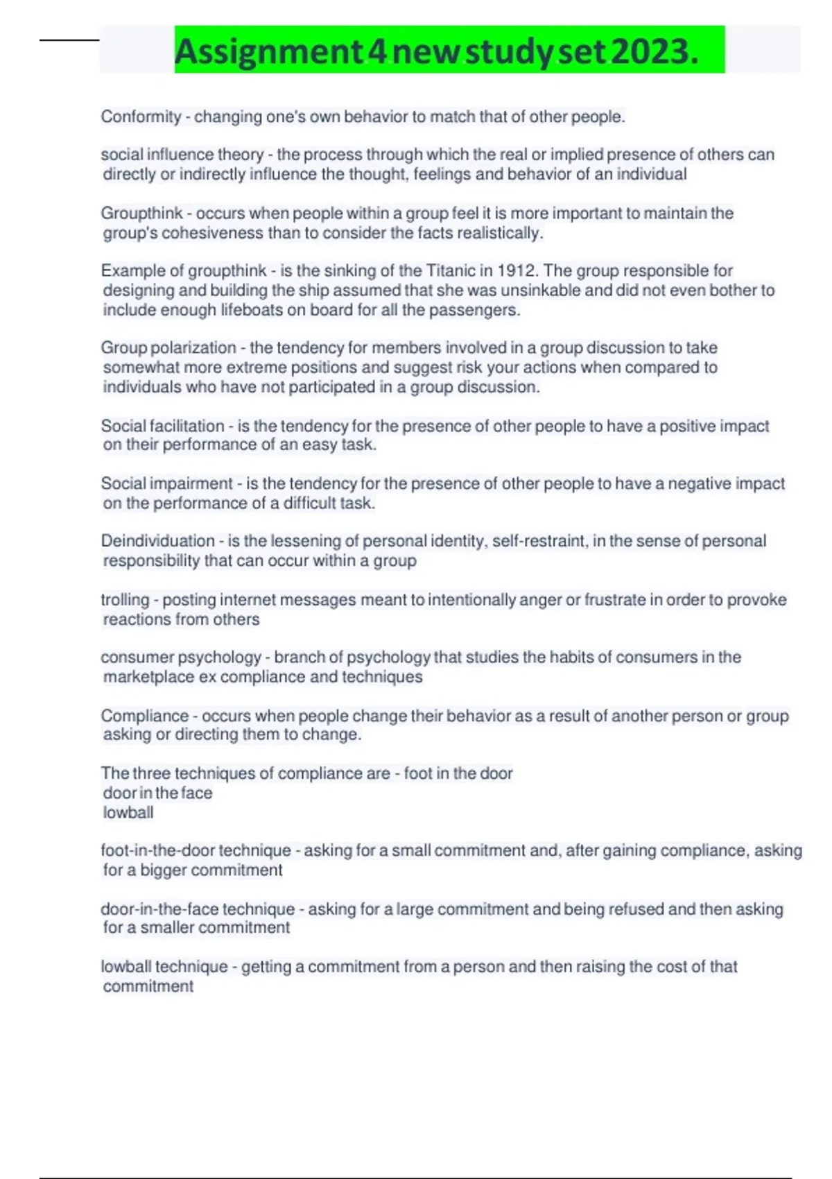 Assignment 4 new study set 2023. n n n n n