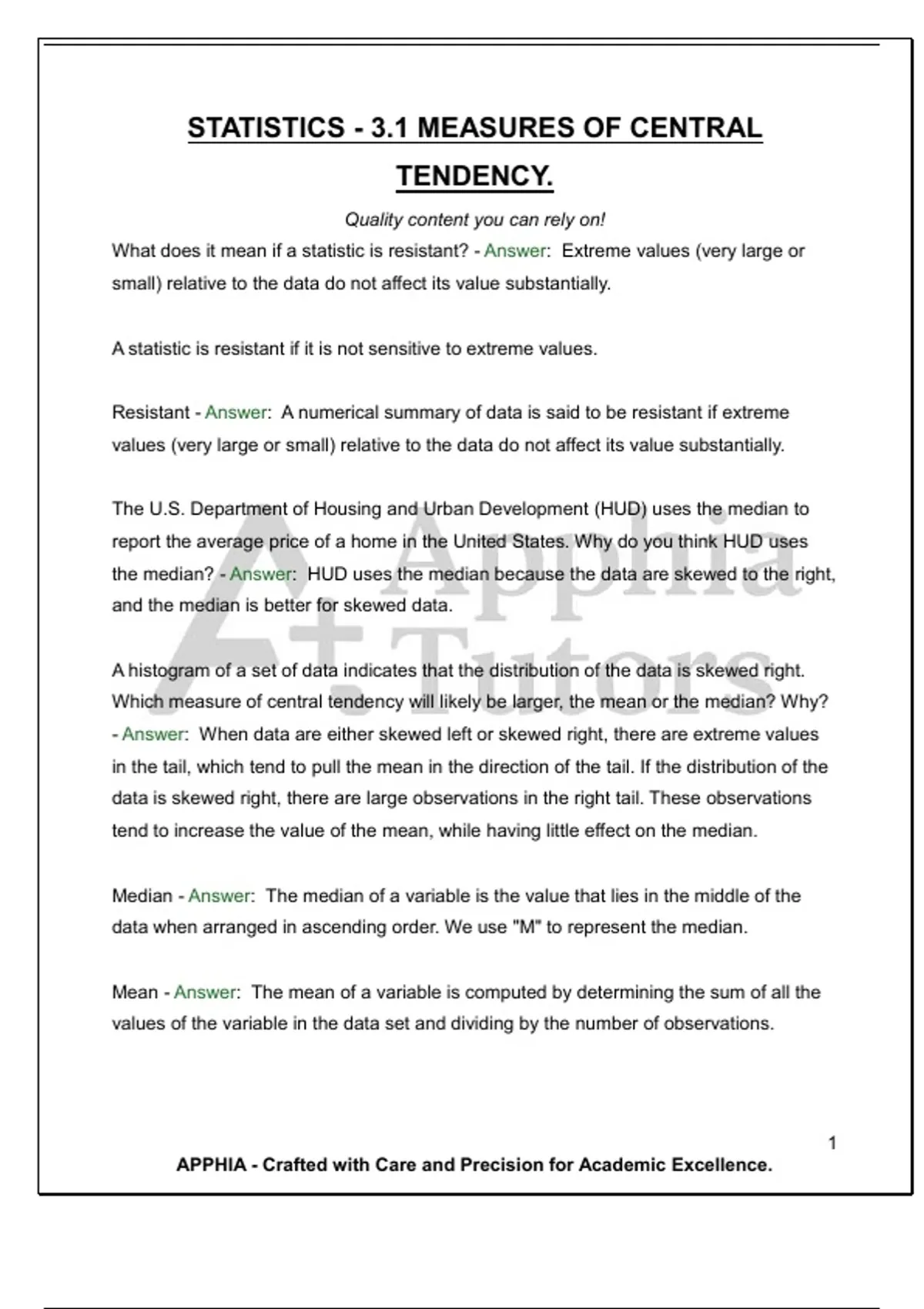 STATISTICS - 3.1 MEASURES OF CENTRAL TENDENCY. Quality content you can rely on!