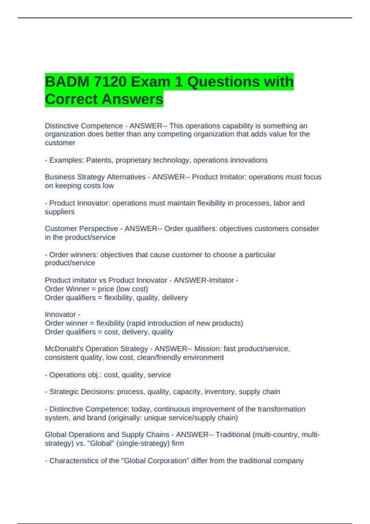 BADM 7120 Exam 1 Questions with